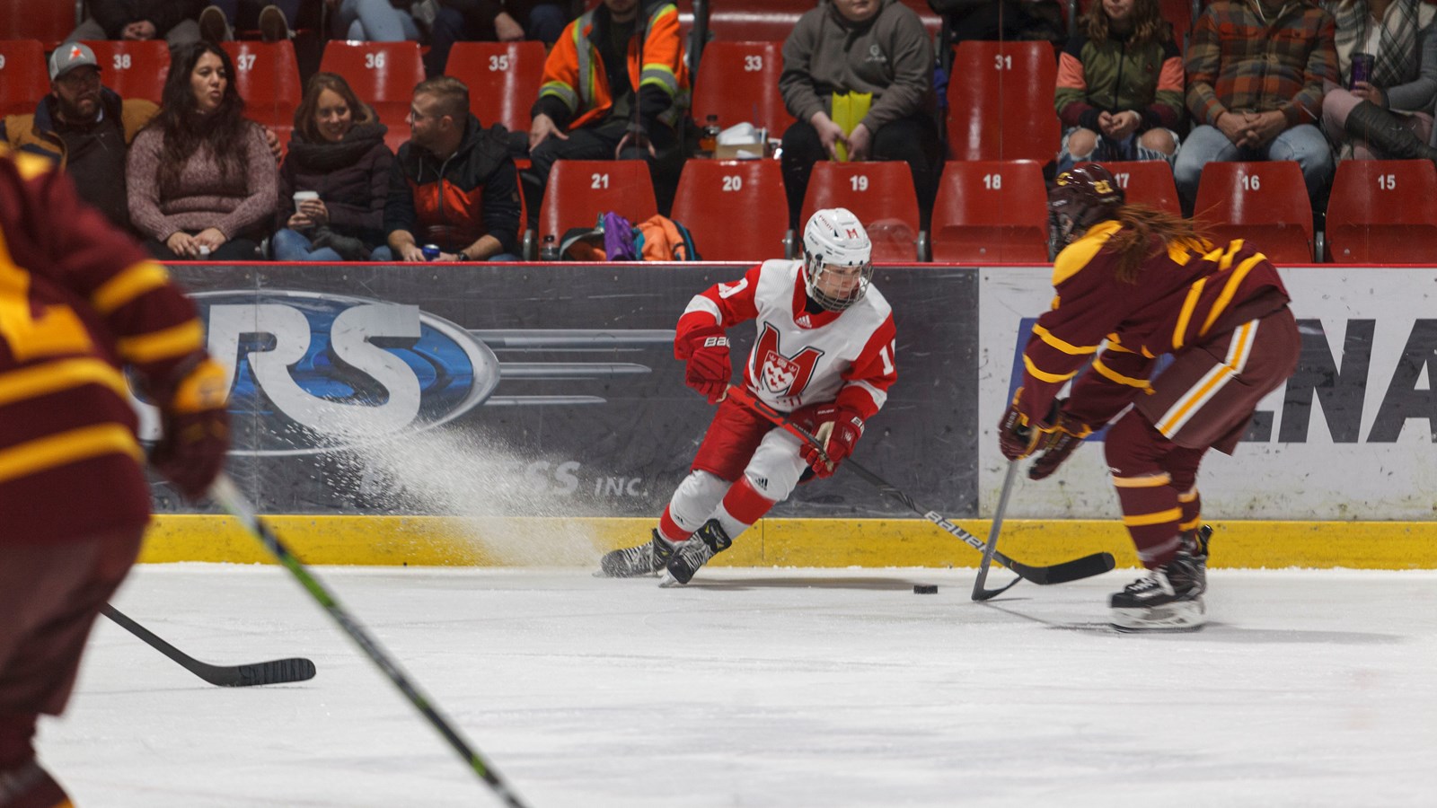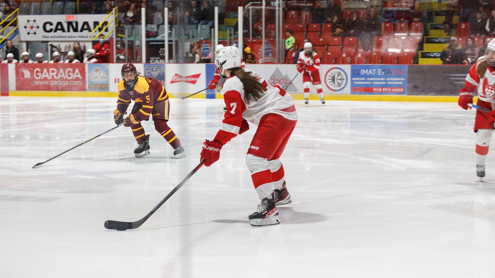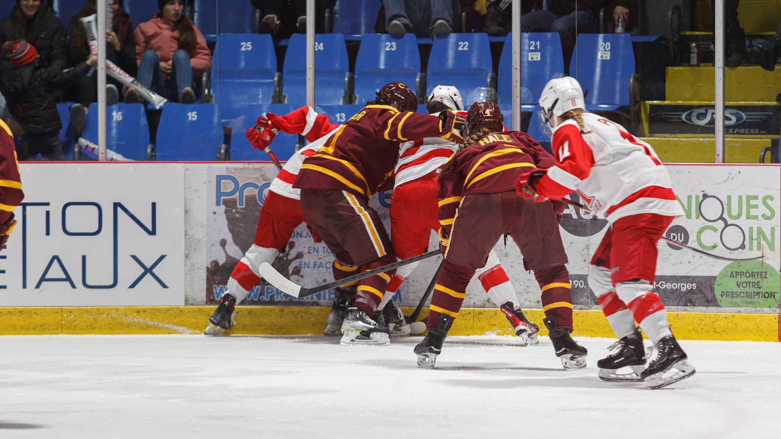 Les trois Beauceronnes, qui revenaient jouer chez elles, ont été chaleureusement accueillies par le public. Emmy Fecteau de Saint-Odilon et Rosalie Bégin-Cyr de Saint-Georges, font partie de l'équipe des Stingers. Tandis que Marika Labrecque de Lac-Etchemin, se trouve parmi les Martlets.