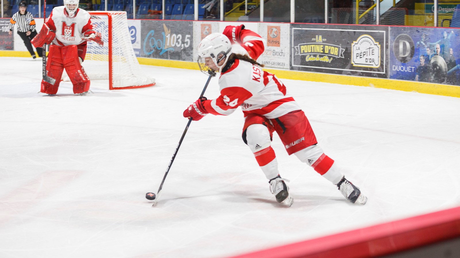 Elles n'avaient pas rejoué en Beauce depuis environ huit ans, alors qu'elles jouaient ensemble en Midget. C'était donc leur première partie dans l’uniforme de leurs universités respectives, devant leurs familles et amis.