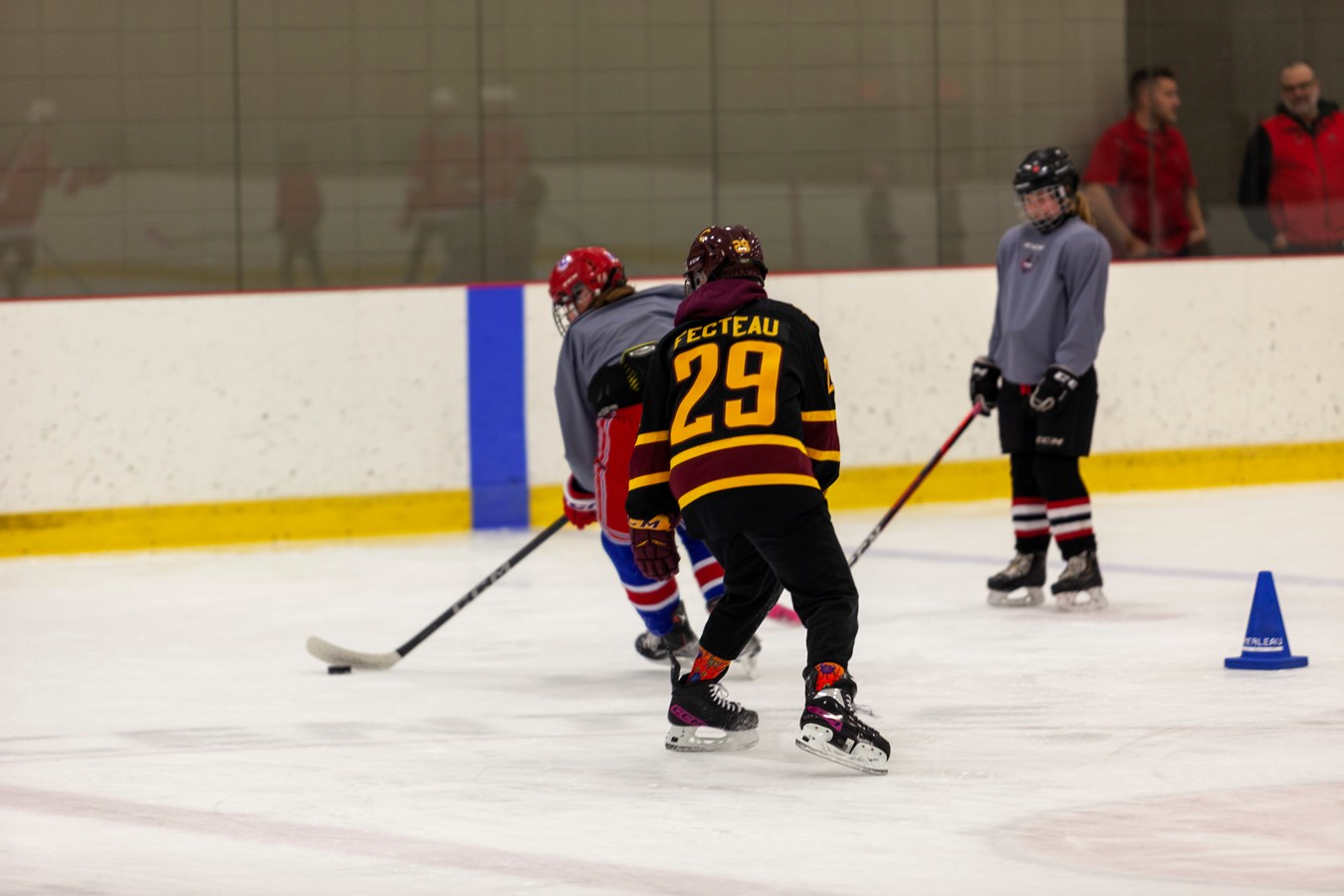 En effet, les jeunes hockeyeuses de la région âgées entre 4 et 16 ans étaient invitées à venir à un entrainement spécial pour promouvoir le hockey féminin. C'était au centre sportif Lacroix-Dutil à Saint-Georges.
