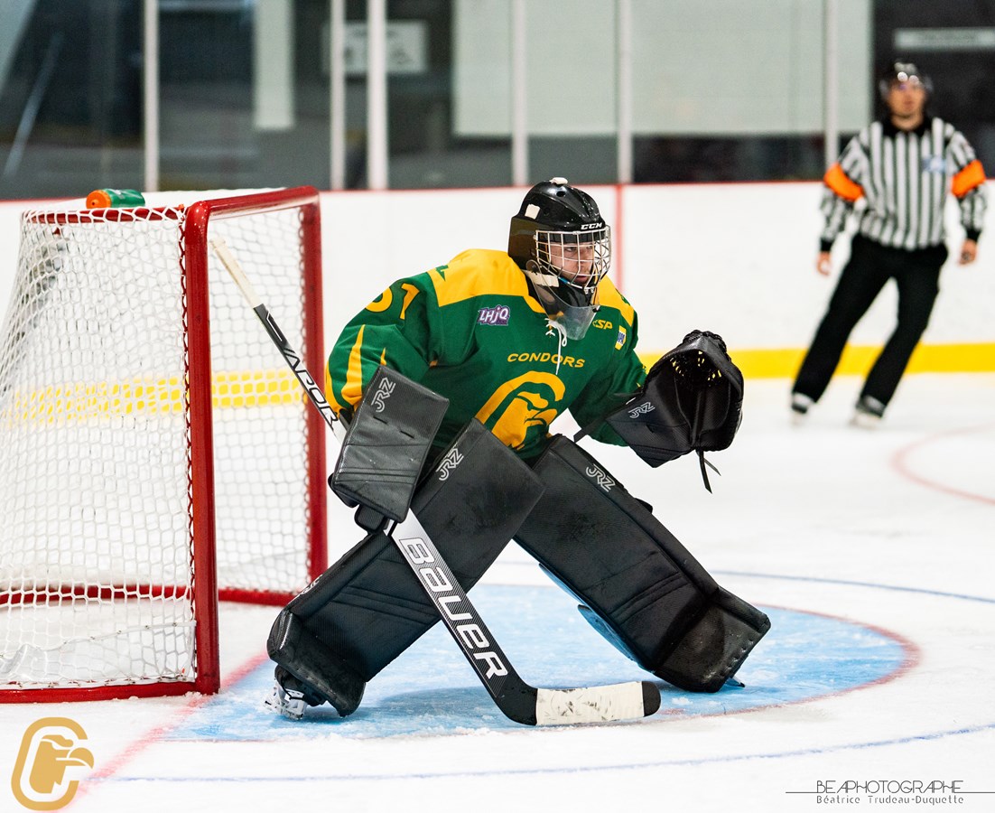 Avec 44 arrêts dans le match, le gardien Jérémy Louchard a permis à son équipe de prolonger sa séquence à 5 matchs avec au moins un point, ce qui place les Condors 4e au classement devant les Panthères de Saint-Jérôme.