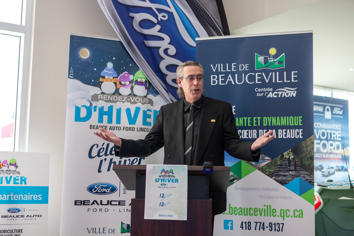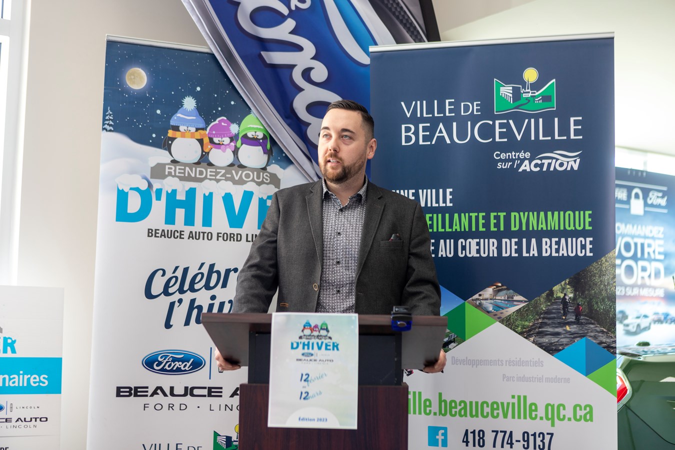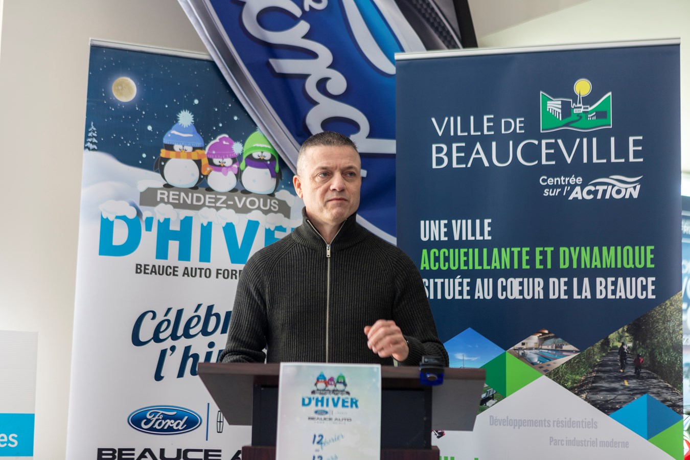 « Nous sommes très heureux d’être partenaire officiel à nouveau des Rendez-vous d’hiver. Comme vous le savez, les deux dernières années ont été assez difficiles, ça l’a forcé les gens à s’isoler, à moins ressauter. Les activités physiques aussi ça été plus difficile, les gens ont moins sortis. Donc c’était important pour nous de revenir en 2023 et les années subséquentes avec les rendez-vous d’hiver. On veut encourager la population à ressauter, à bouger et faire de l’activité physique et se rencontrer. C’est toutes des bonnes choses pour tout le monde », indique Sébastien Laflamme, directeur général de Beauce Auto Ford Lincoln, lors du dévoilement de la programmation.
