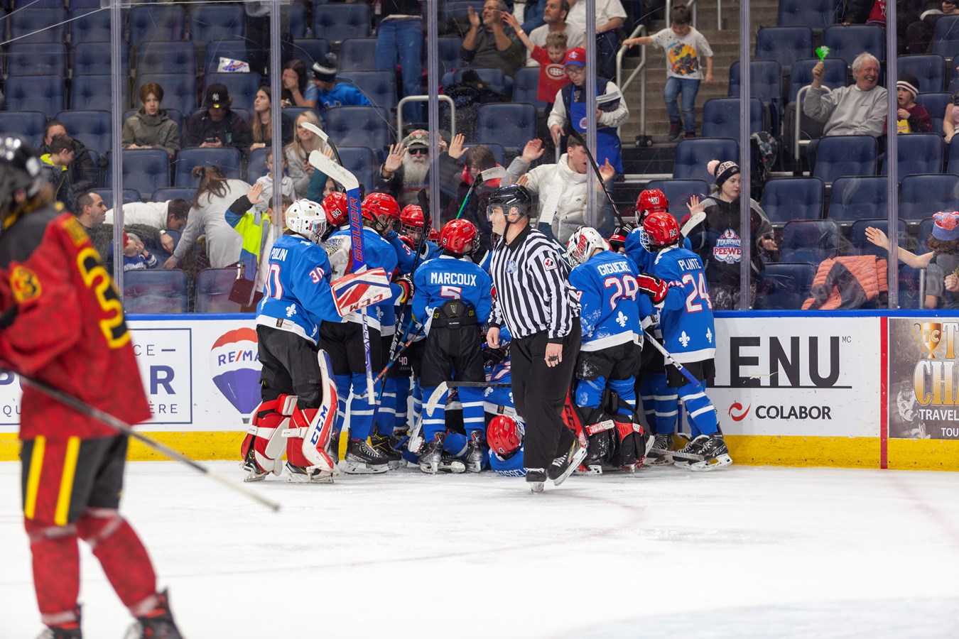 Finalement, après seulement 58 secondes de la période de prolongation, Hugo Bergeron assisté de Simon Delarosbil et de Logan Carrier, ont marqué le but gagnant.