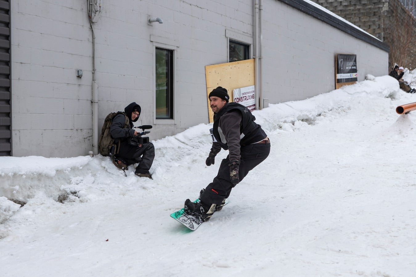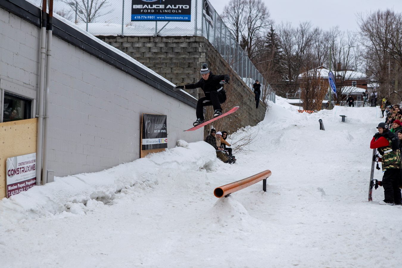La rencontre de snowboard avait lieu dans la 113e rue à Saint-Georges ce samedi. Une compétition opposait plusieurs professionnels et plusieurs débutants. Dans la catégorie pro, les trois gagnants se sont partagé une bourse de 2 000$.