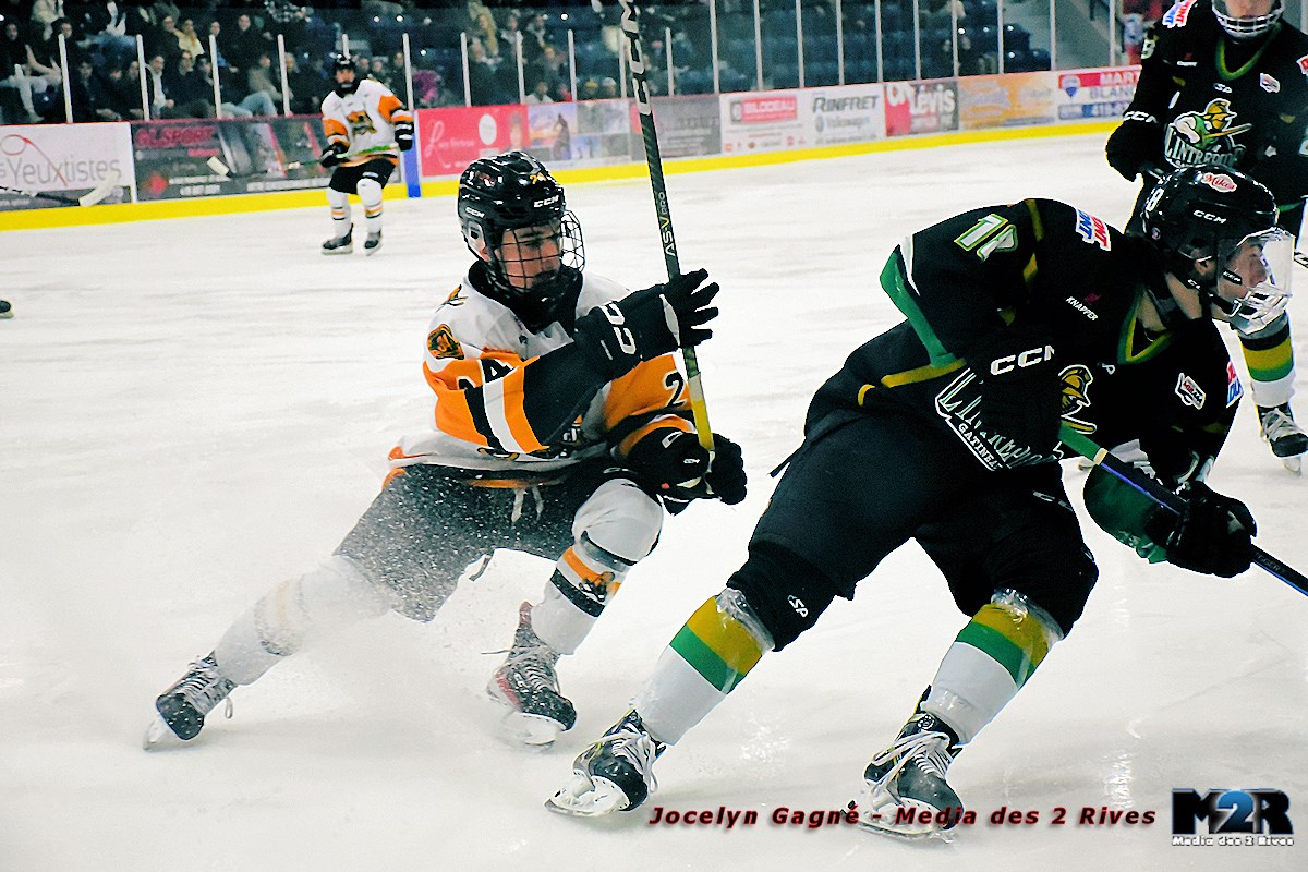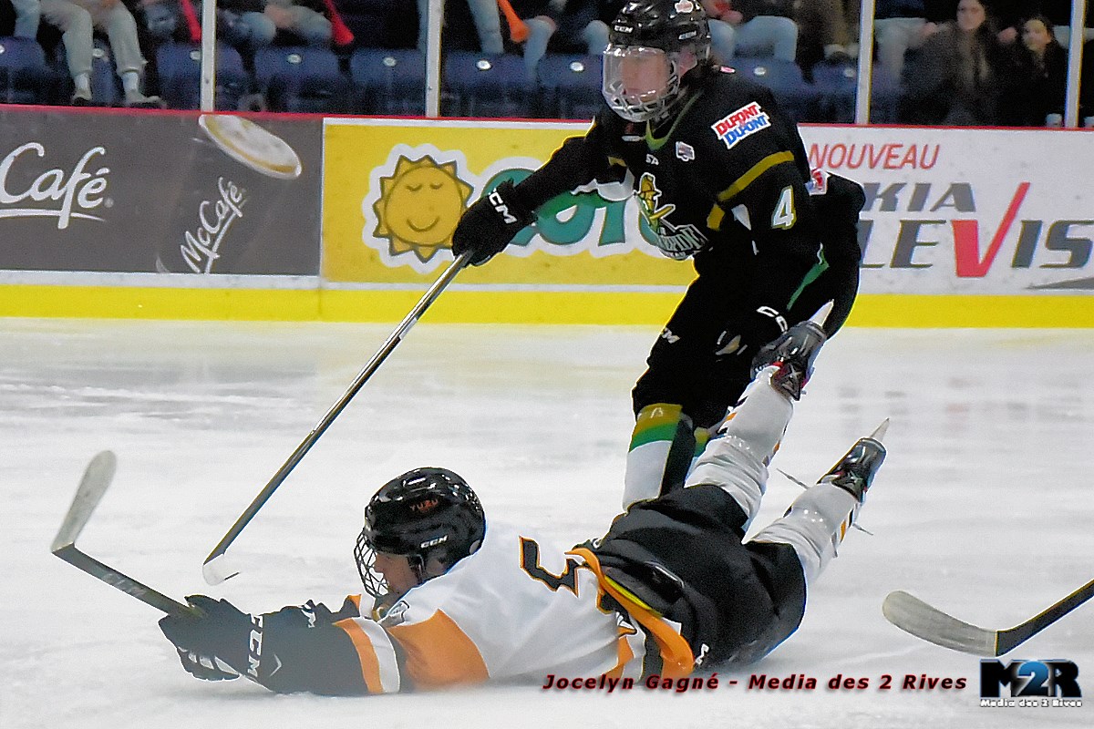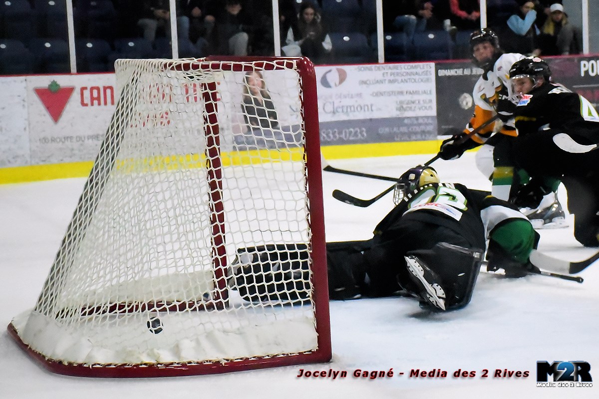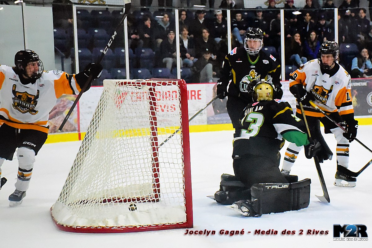 Le match a débuté en lion. Les Lévisiens prennent les devants 1 à 0 dès la deuxième minute de jeu. Nathan Langlois récupère un retour de lancer pour inscrire le premier but du match. Les Lévisiens doublent leur avance quelques minutes plus tard lorsque William-Alexis Tremblay complète une belle passe transversale de Justin Breton. Les deux buts sont survenus en avantage numérique. Les visiteurs créent l’égalité en moins d’une minute. Marek Legault et Samuel Fontaine marquent en 55 secondes. Les représentants de Chaudière-Appalaches reprennent les devants lorsque Nathan Langlois aperçoit Matt Gosselin qui se présente dans l’enclave. Ce dernier ne manque pas sa chance.