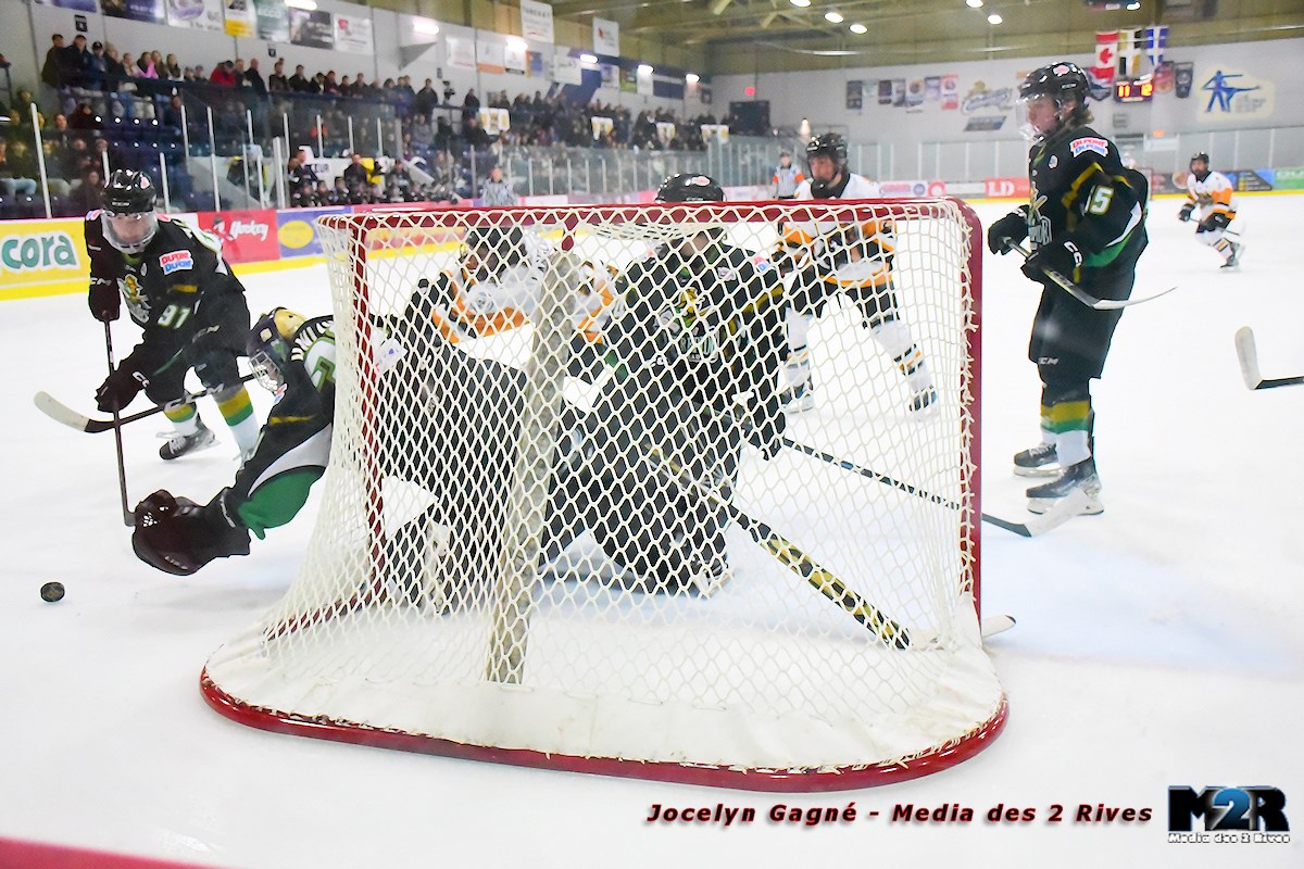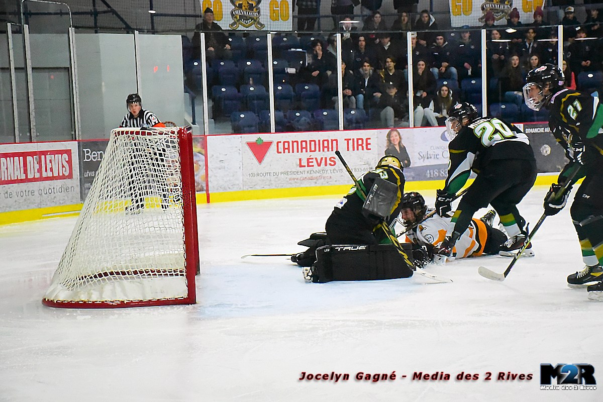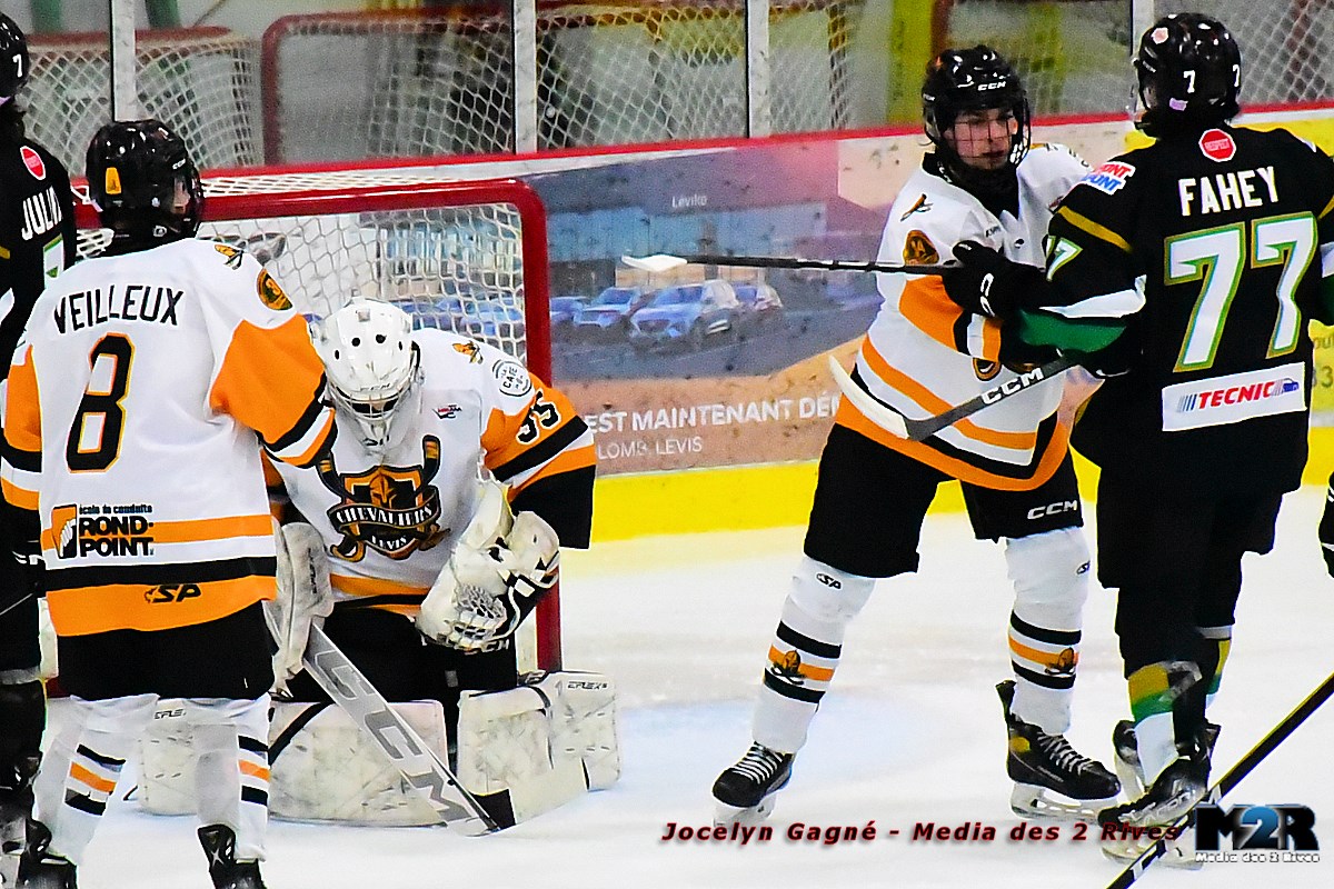 Au deuxième vingt, les visiteurs manquent une belle chance de revenir dans la partie. Ils sont incapables de bénéficier de 4 avantages numériques. La défensive lévisienne et le gardien Luc-Antoine Labbé font du bon travail et tiennent le coup. Les Chevaliers retraitent au vestiaire en avance d’un but seulement.