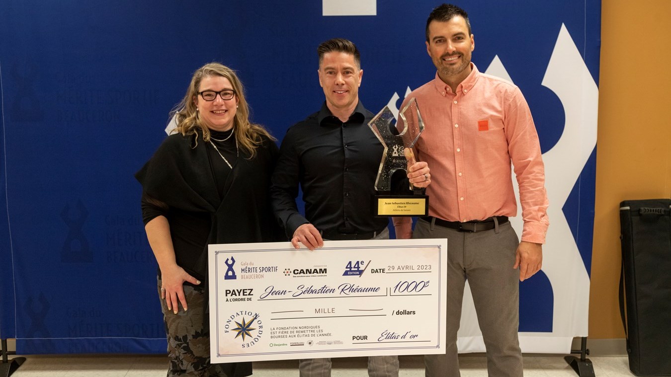 Le dynamophile Jean-Sébastien Rhéaume s'est vu remettre l’Élitas d’Or au 44e Gala du Mérite sportif beauceron présenté au Centre multifonctionnel de Saint-Éphrem hier soir.