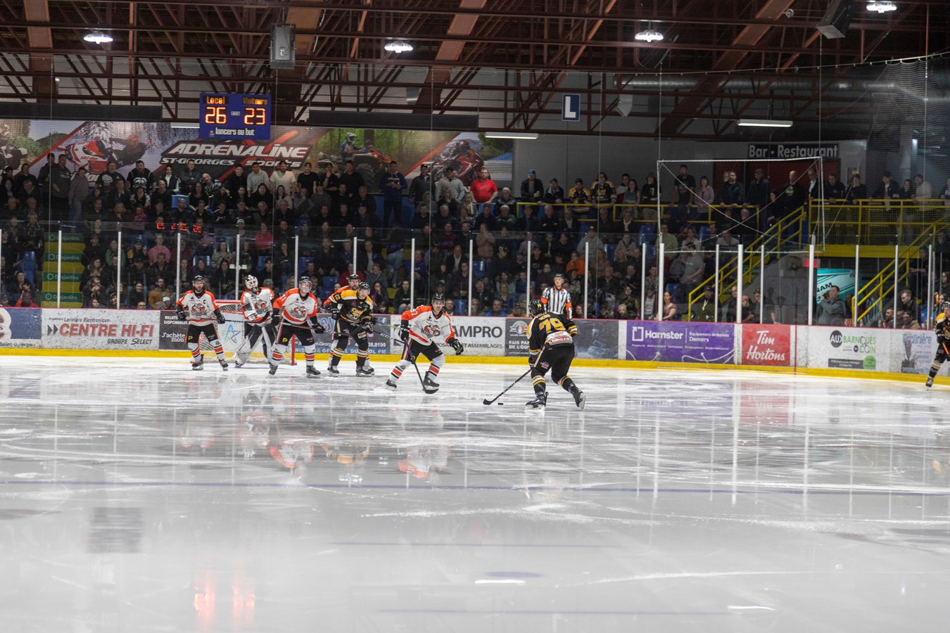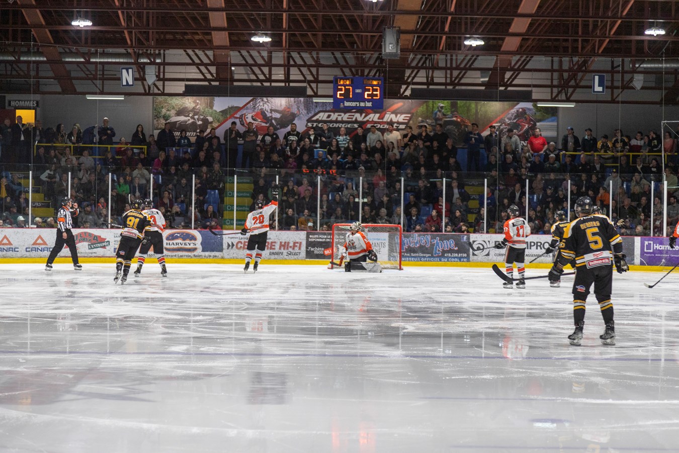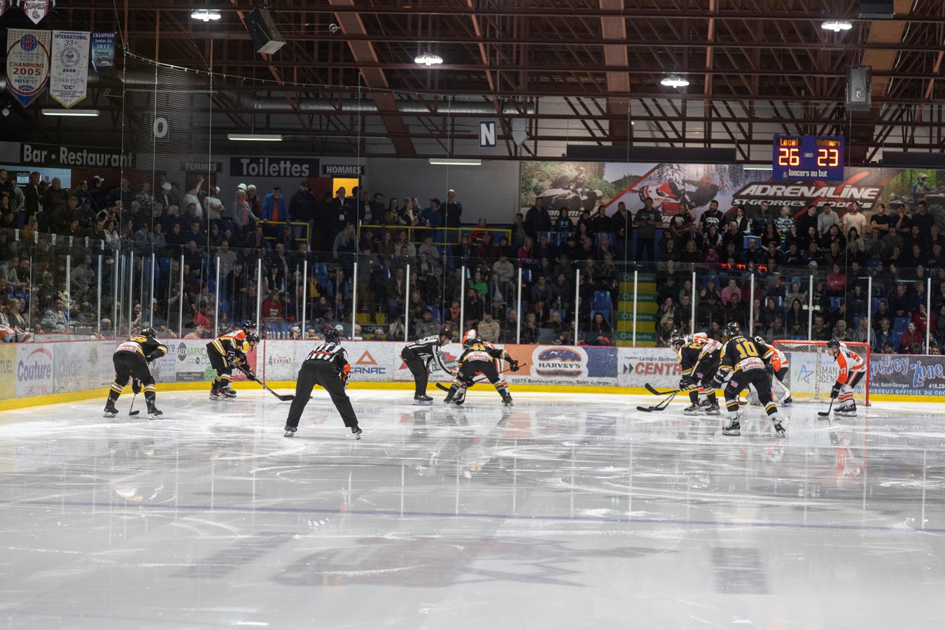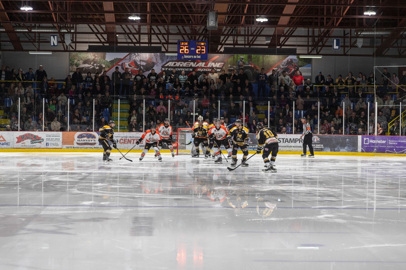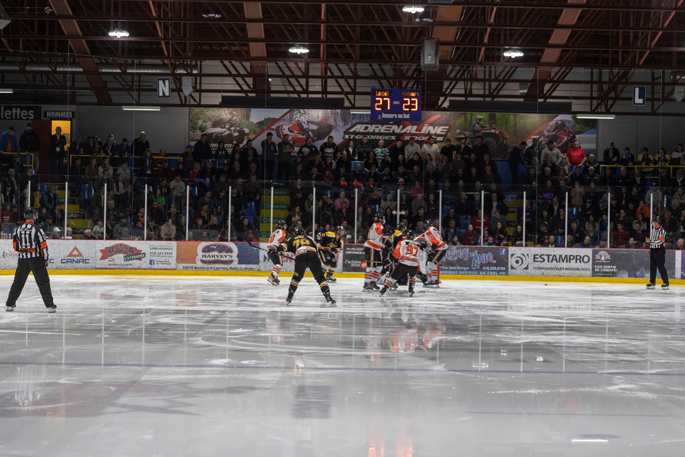 L'affrontement entre ces deux équipes de la Ligue nord-américaine de hockey (LNAH) a amené 3010 spectateurs au centre sportif Lacroix-Dutil de Saint-Georges. C'est la plus grosse foule de l'année dans cette Ligue.