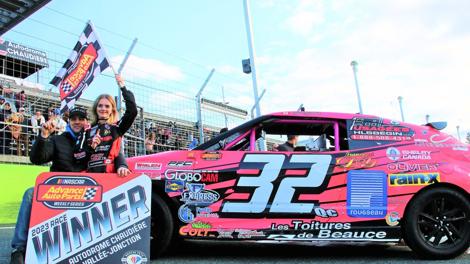 Ensuite, Chloé Grondin de Saint-Georges a offert au public de Vallée-Jonction un autre titre. C'est dans le cadre du Nascar Sport Compact Sénior Les Entreprises Daniel Carré que la jeune pilote de 16 ans a pris sa place.