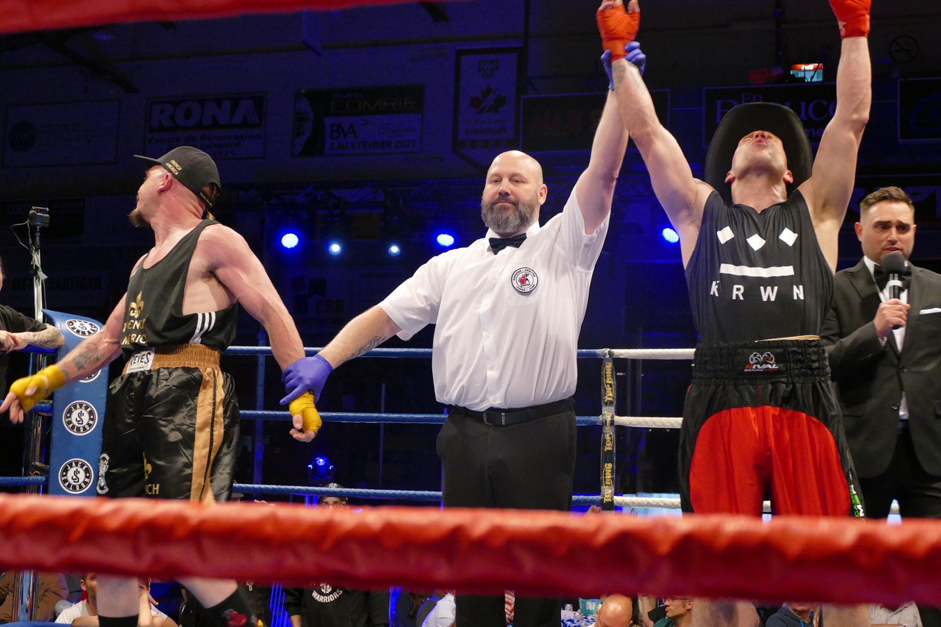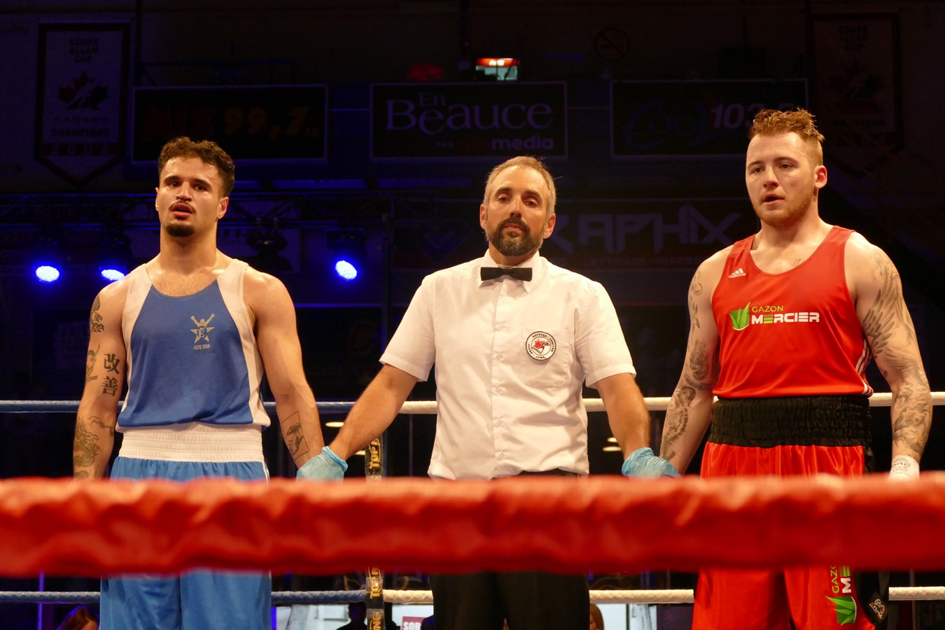 Les 2 000 spectateurs du Centre sportif ont assisté à du beau spectacle. En ouverture, ce sont les juniors du club de boxe Hubert Poulin qui se sont affrontés. Ryan Lapierre et Mickael Dupuis se sont ainsi facilement imposés.