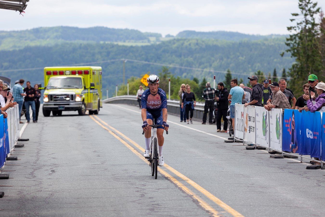 Le jeune homme originaire de Laval a parcouru les 143 km de l'étape en 3h21m27s, à plus de 42 km/h de moyenne.