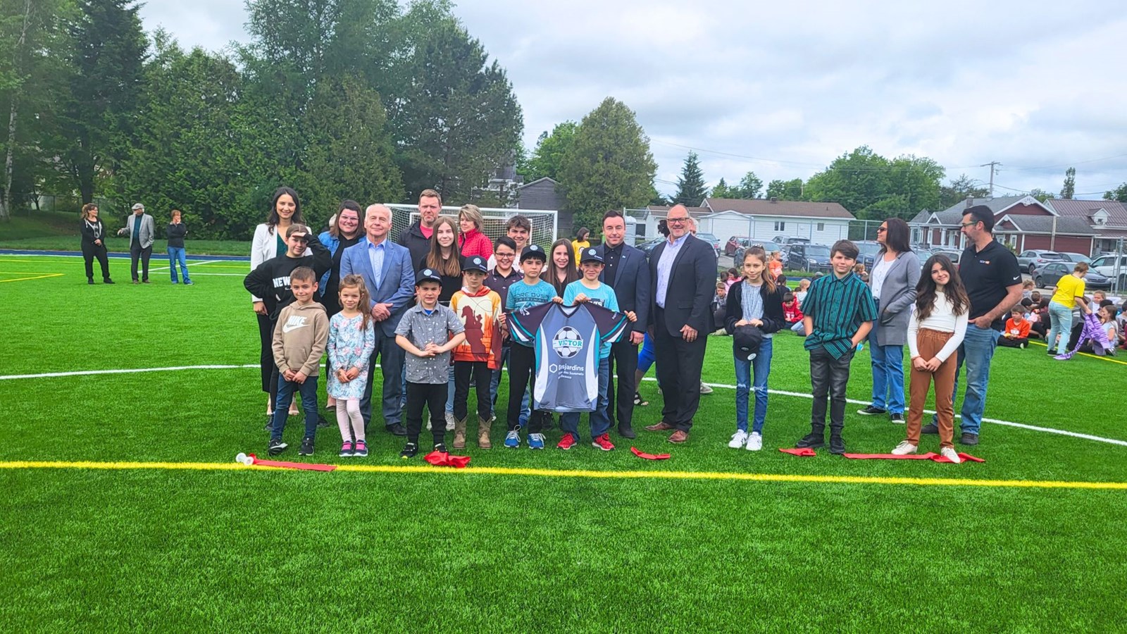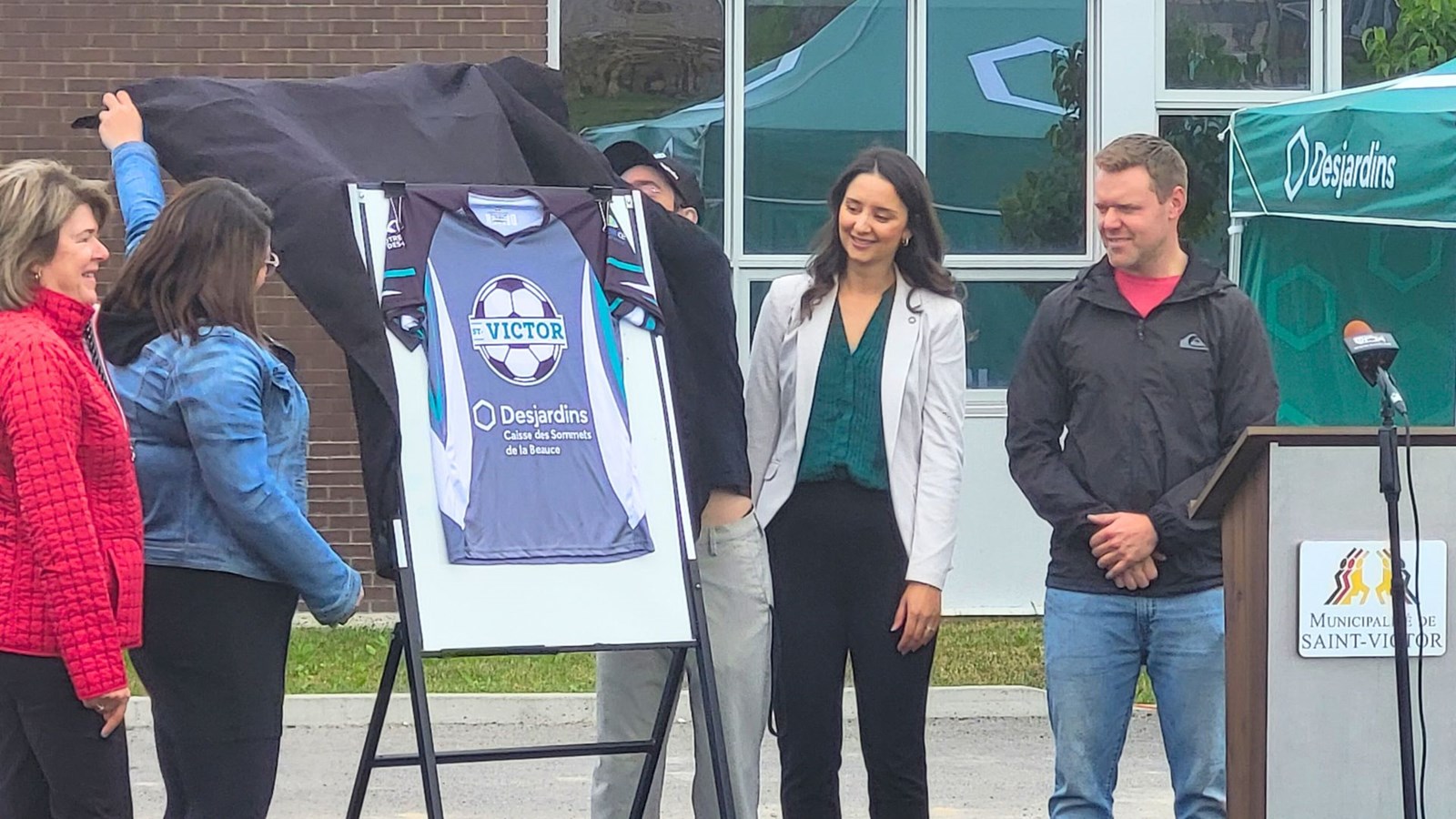 Par ailleurs, on a profité de la tenue de la conférence de presse pour y dévoiler également les nouveaux chandails de soccer pour l'équipe locale. Le gris et le vert englobent ce vêtement sportif que porteront fièrement les enfants chaque été à venir.