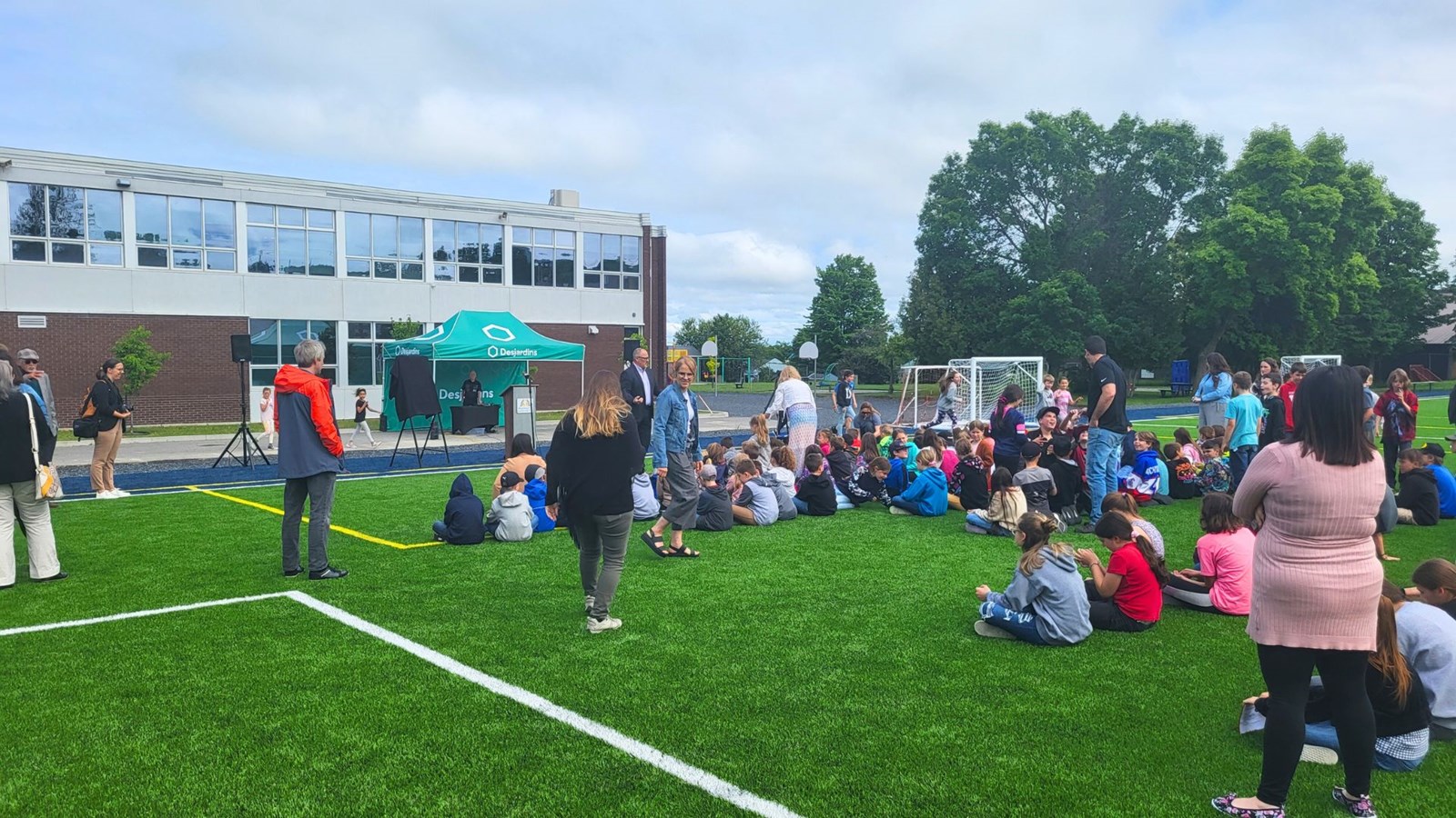 L’installation bénéficiera aux élèves de l’école ainsi qu'à la population locale, notamment pour l’offre d’activités sportives, dont le soccer. L’ajout d’une surface synthétique à la cour d’école permet de prolonger la saison d’activité, pouvant être utilisée dès la fonte de la neige jusqu’à tard à l’automne. Le terrain rend aussi plus sécuritaire la pratique sportive.