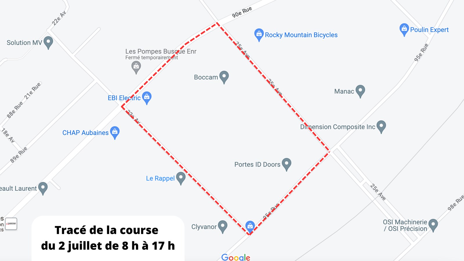 De ce fait, les secteurs de la 90e rue et la 95e rue seront concernés par le tracé du critérium, au niveau de la 22e et 25e avenue. Il est recommandé d'éviter le secteur ce dimanche entre 8 h et 17 h, afin de permettre la bonne tenue de la course.