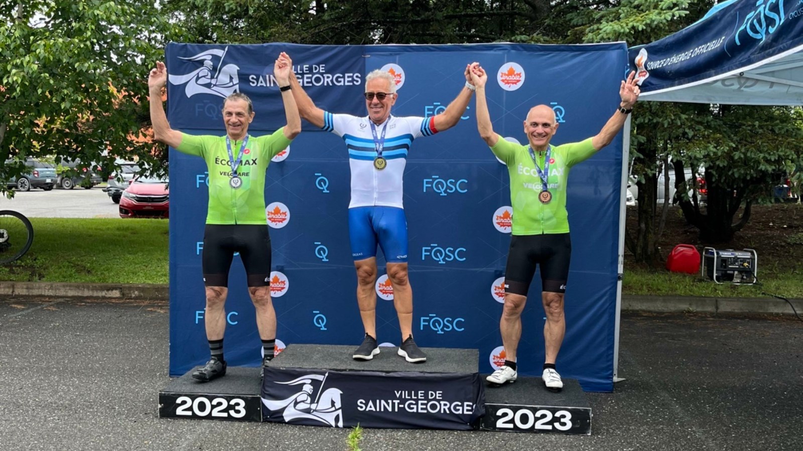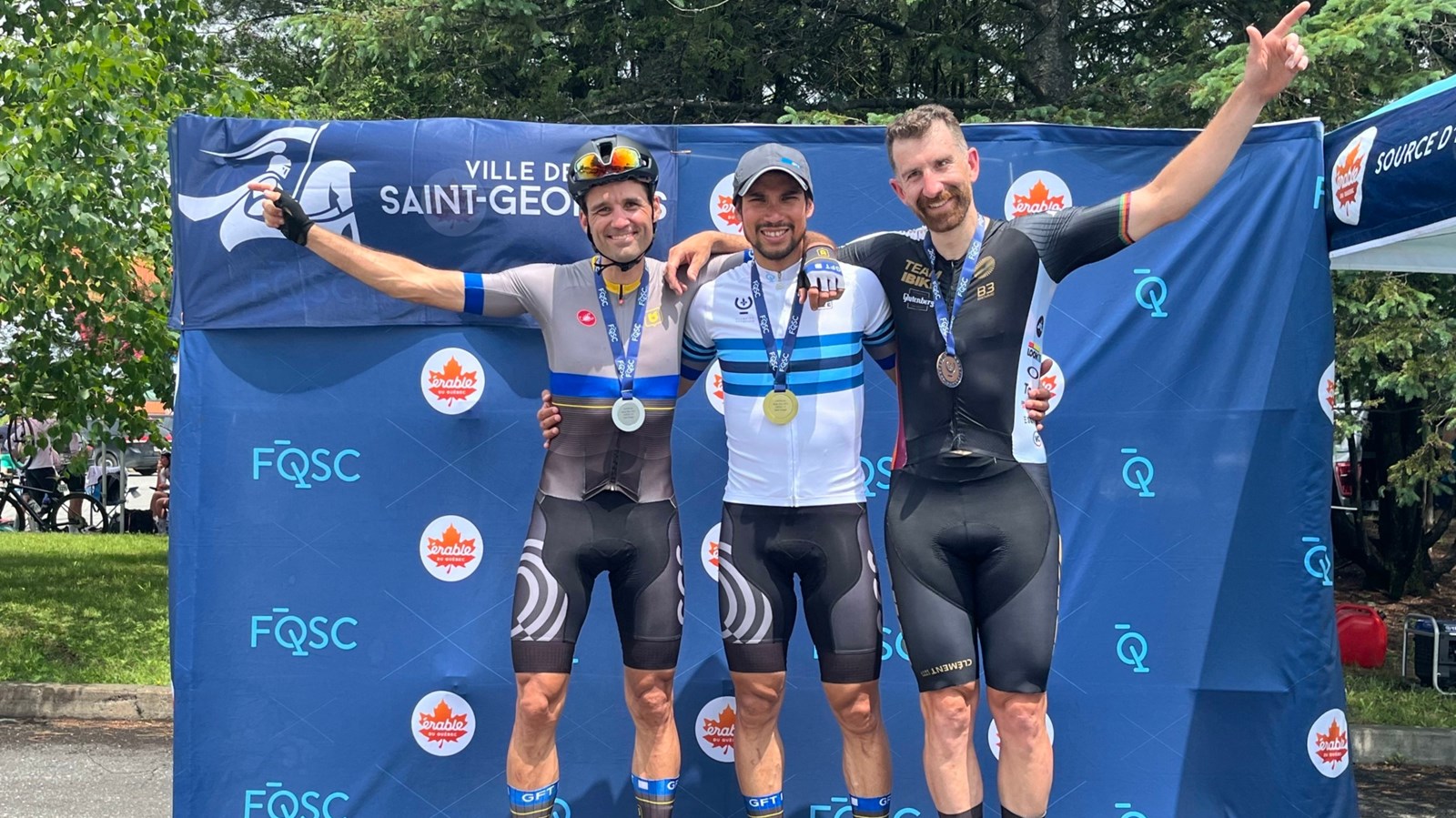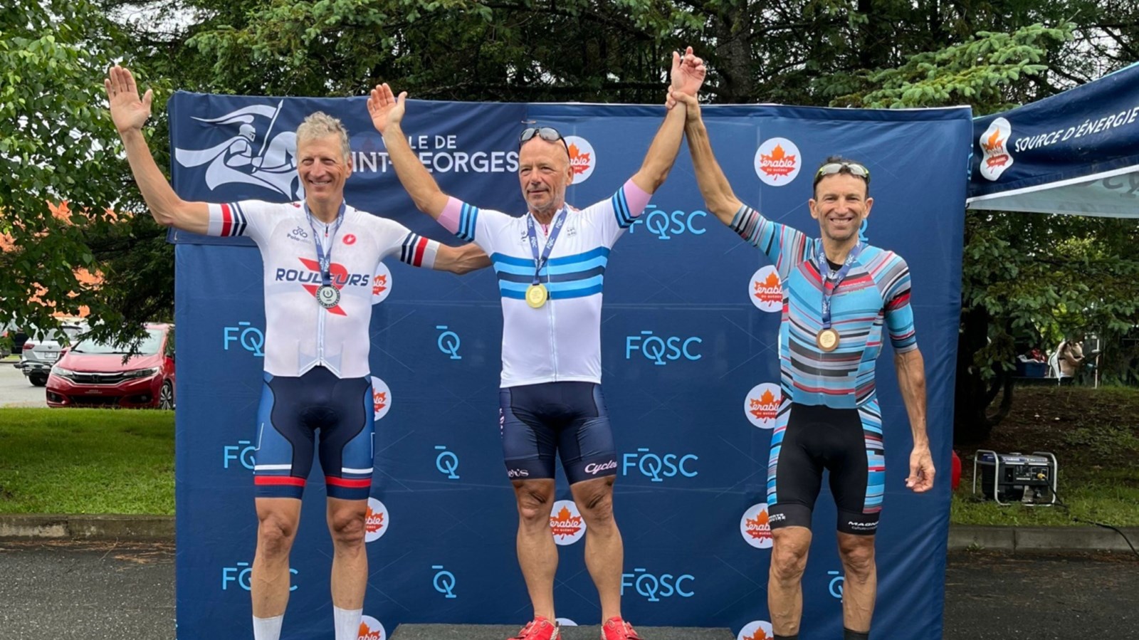 Chez les maîtres D hommes, Sylvan Adams a remporté un troisième titre canadien et québécois en autant d'épreuves sur le week-end. Il a devancé Julien Rioux et Guy Marcotte.