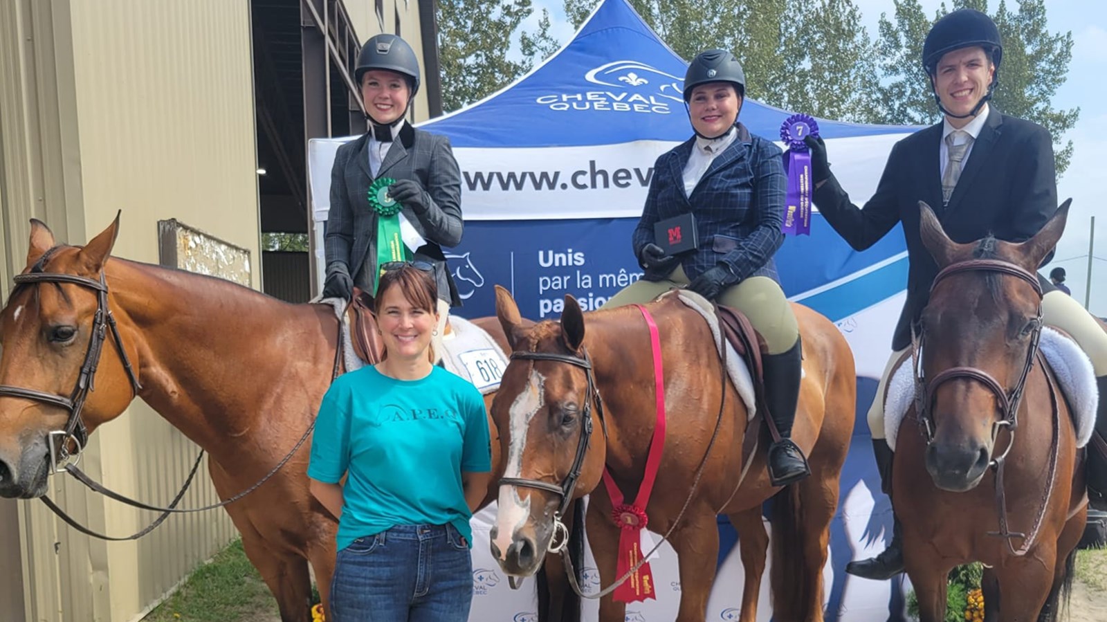 « De retour des Finales Provinciales de Cheval Québec (Westferia 2023), j"avoue être plus que fière en tant qu'entraîneur de ma "Gang de Jarrets Noirs". Nous avions peut-être la plus petite équipe mais nous avons tout de même beaucoup de coeur au ventre, » a lancé Sonia Cliche, sur sa page Facebook.