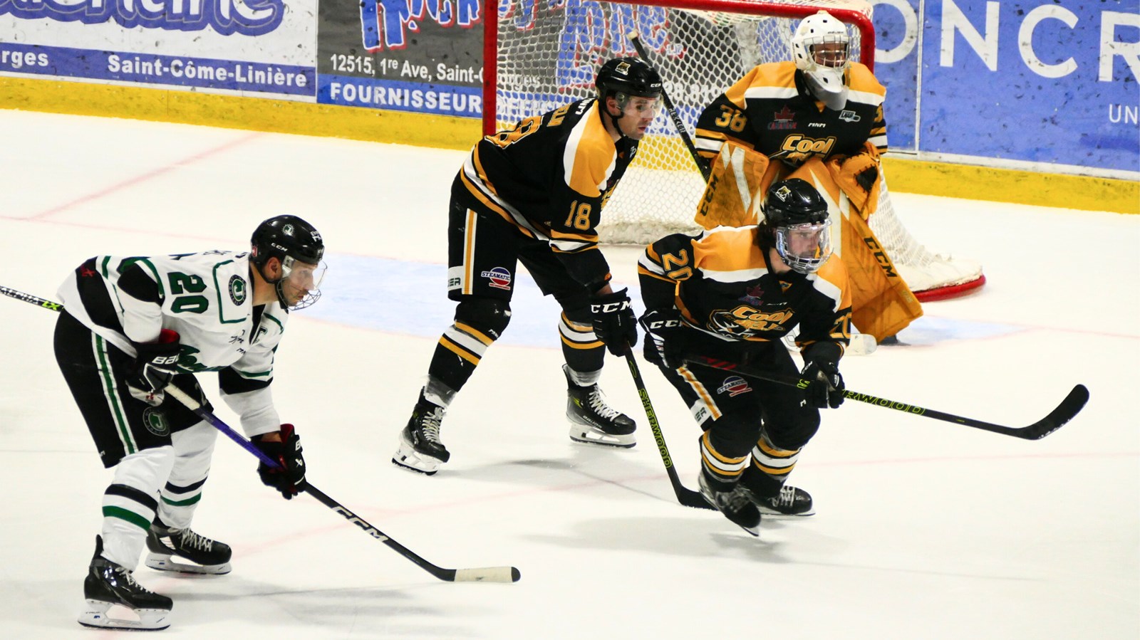 Le Cool FM de Saint-Georges rencontrait les Marquis de Jonquière ce jeudi 11 janvier au Centre Sportif Lacroix Dutil. Les hommes de Dominic Lapensée se sont imposés en prolongation 5 à 4.