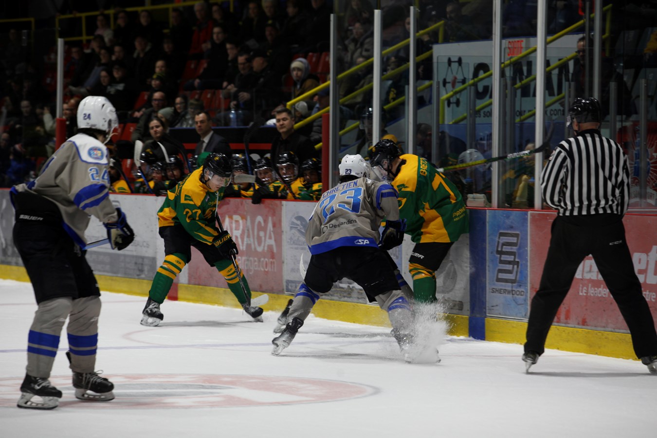 Les deux équipes sont respectivement première (pour les Condors) et deuxième (pour l'Everest) du classement de la Ligue de hockey junior AAA du Québec (LHJAAAQ). Elles s'affrontaient ce dimanche 28 janvier devant 461 partisans, au centre sportif Lacroix-Dutil de Saint-Georges.