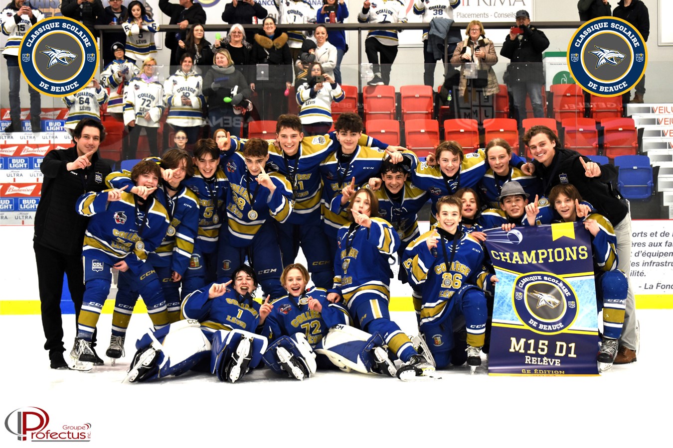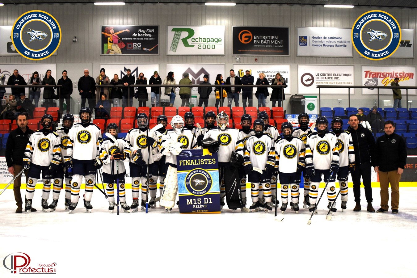 Ce fut une partie de finale enlevante entre les Commandeurs et l’Arsenal. Le Collège de Lévis menait 3-1, en fin de 3e période, et, avec moins d’une minute à faire à la rencontre, l’Arsenal marque un 2e but. L’Académie Saint-Louis touche la barre horizontale avec 0.1 seconde à faire à la rencontre. C’est ainsi que les Commandeurs de Lévis remportent la grande finale de la classe M15D1 relève.