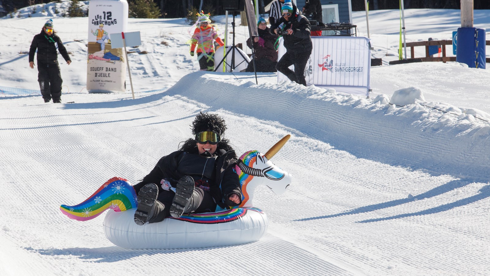 Des amateurs de sport d'hiver se sont prêtés au jeu de la Descente des Cabochons organisé ce samedi au centre de ski de Saint-Georges.