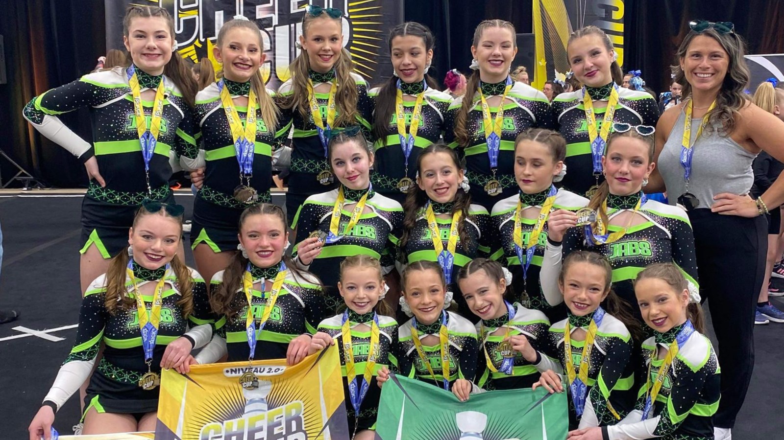 Quatre équipes des Jabs Cheerleading de Saint-Joseph-de-Beauce étaient en compétition, les 20 et 21 avril pour la Cheer Cup à Longueuil.
