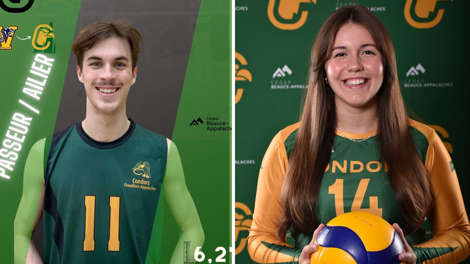 Originaires de Saint-Georges, les étudiants en Techniques d’éducation spécialisée Julien Bernard-Grenier et Andy Poulin sont en nomination pour l’Équipe Junior. Ils ont remporté la médaille d’or en volleyball de plage aux Jeux du Québec de 2023 sans avoir perdu une seule manche durant le tournoi. Julien a rejoint les Condors volleyball D2 cet hiver, tandis qu’Andy se joindra à son coéquipier cet automne pour porter fièrement les couleurs jaune et vert lors de la saison 2024-2025.