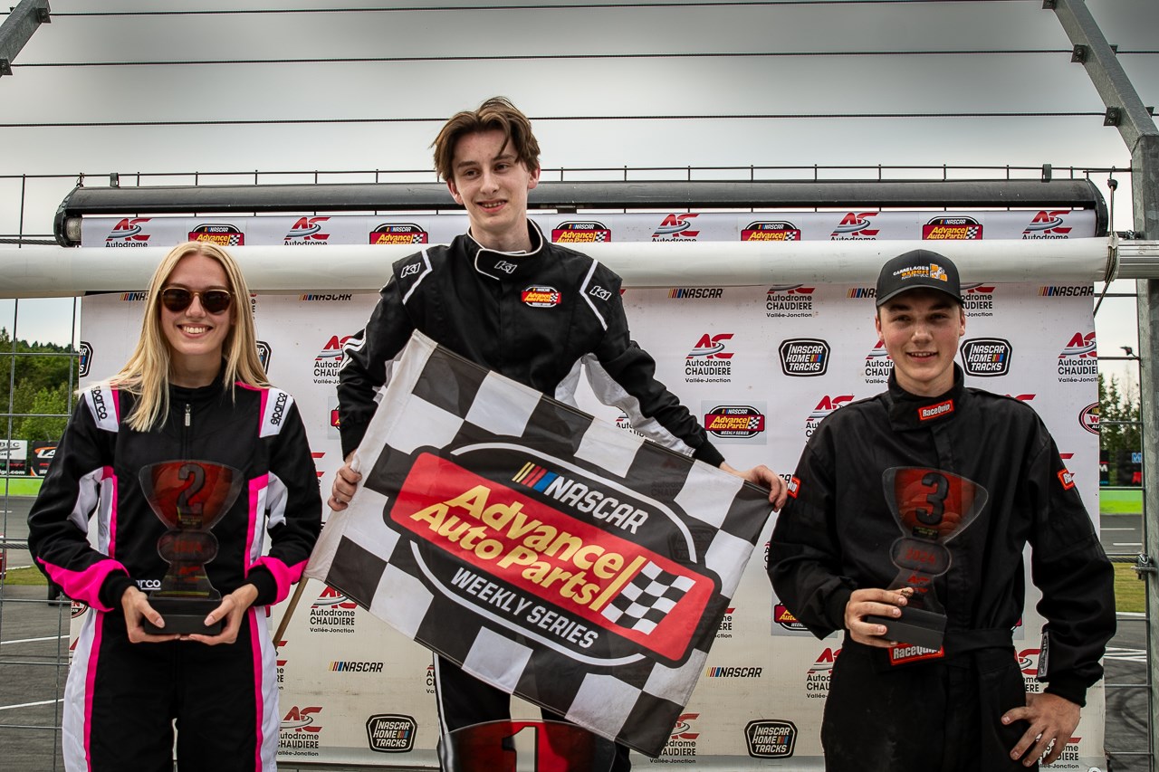 La relève de l’Autodrome Chaudière s'est, encore une fois, présentée fièrement avec 22 voitures en piste. Scindé en 2 groupes pour les qualifications, la première fût l'affaire de la jeune recrue, Dale Côté no.59 commandité par KF Comptabilité et Clément Poulin Pièces et Autos usagées. La seconde qualification fût remportée par Jérémy Poulin no.18, chapeauté par Clément Poulin pièces d’auto et Slimwave Technologies. Déjà, les séances de qualifications promettaient une finale de 40 tours, relevée! Ce sont Sandrine Labbé no.40 et Poulin no.18 qui ont lancé le départ. Encore une fois, le spectacle valait le déplacement. Les pilotes ont travaillé sur la préparation de leur voiture et le contingent est de plus en plus resserré lors des épreuves. Labbé no. 40, propulsée par Construction Yvon Labbé et Dépanneur Jean-Paul Lessard a mené le groupe pendant plus de la moitié de la course avant que Dale Côté no.59, ne la lui prenne. À l’arrière, la compétition était forte pour les positions 3 et 4, entre Jacob Laliberté no.38, Poulin no.18, Francis Robillard no.98, Félix Saint-Pierre no.77 et Hémaël Vallières no.33. La finale se conclut donc avec Côté no. 59 au 1er rang, suivi de Sandrine Labbé no.40 et de Jacob Laliberté no.38, ce dernier étant commandité par Carrelage Expert Pascal Bougie et Pièces d'auto Fernand Bégin. Les positions 4 et 5, appartiennent respectivement à Jérémy Poulin no.18 et Francis Robillard no.98