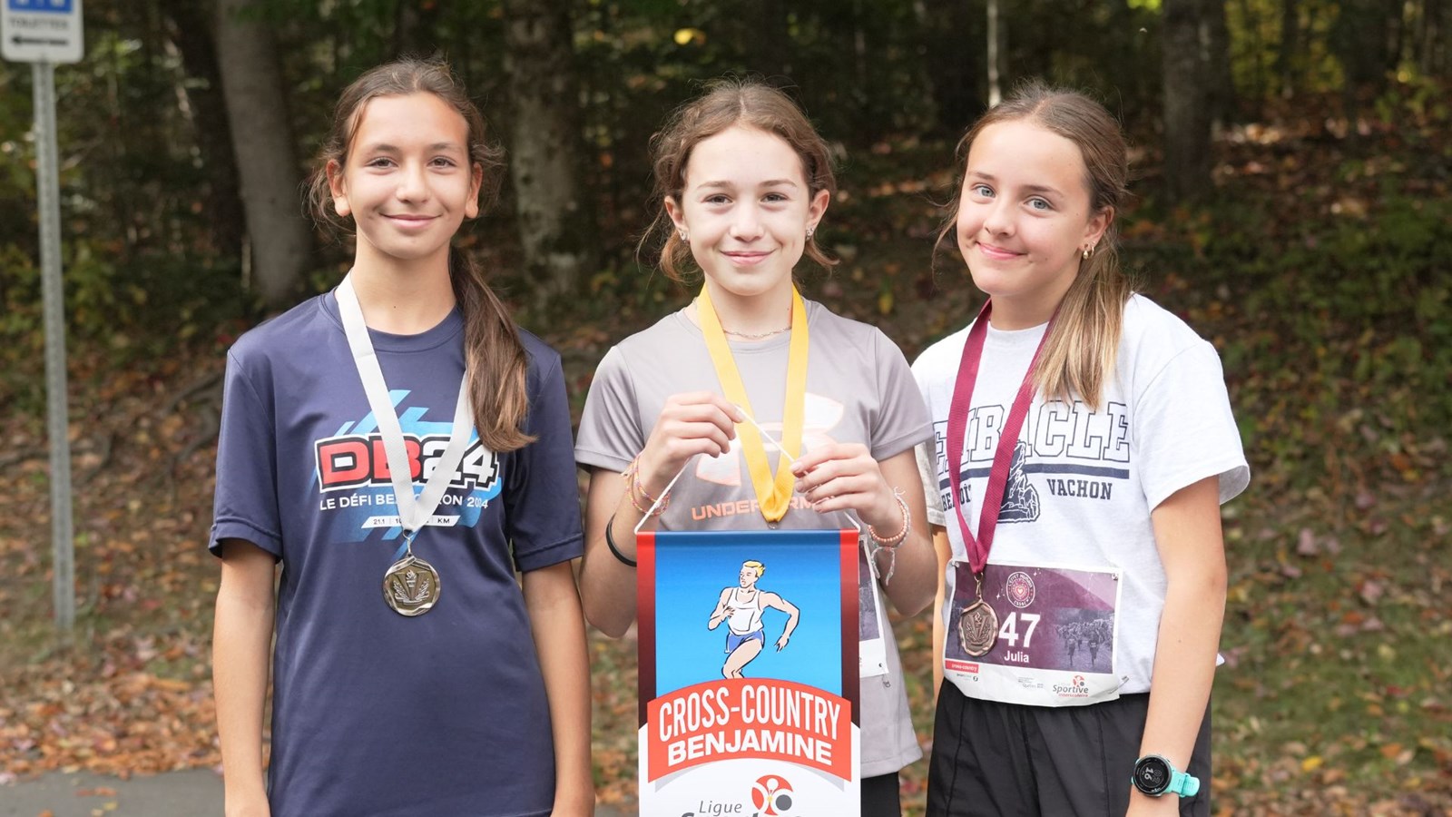 Podium Benjamines: 1 - Naomie Vachon/École des Deux-Rives, 2- Ariane Groleau/ École des Deux-Rives, 3- Julia Savoie/Polyvalente Benoît-Vachon