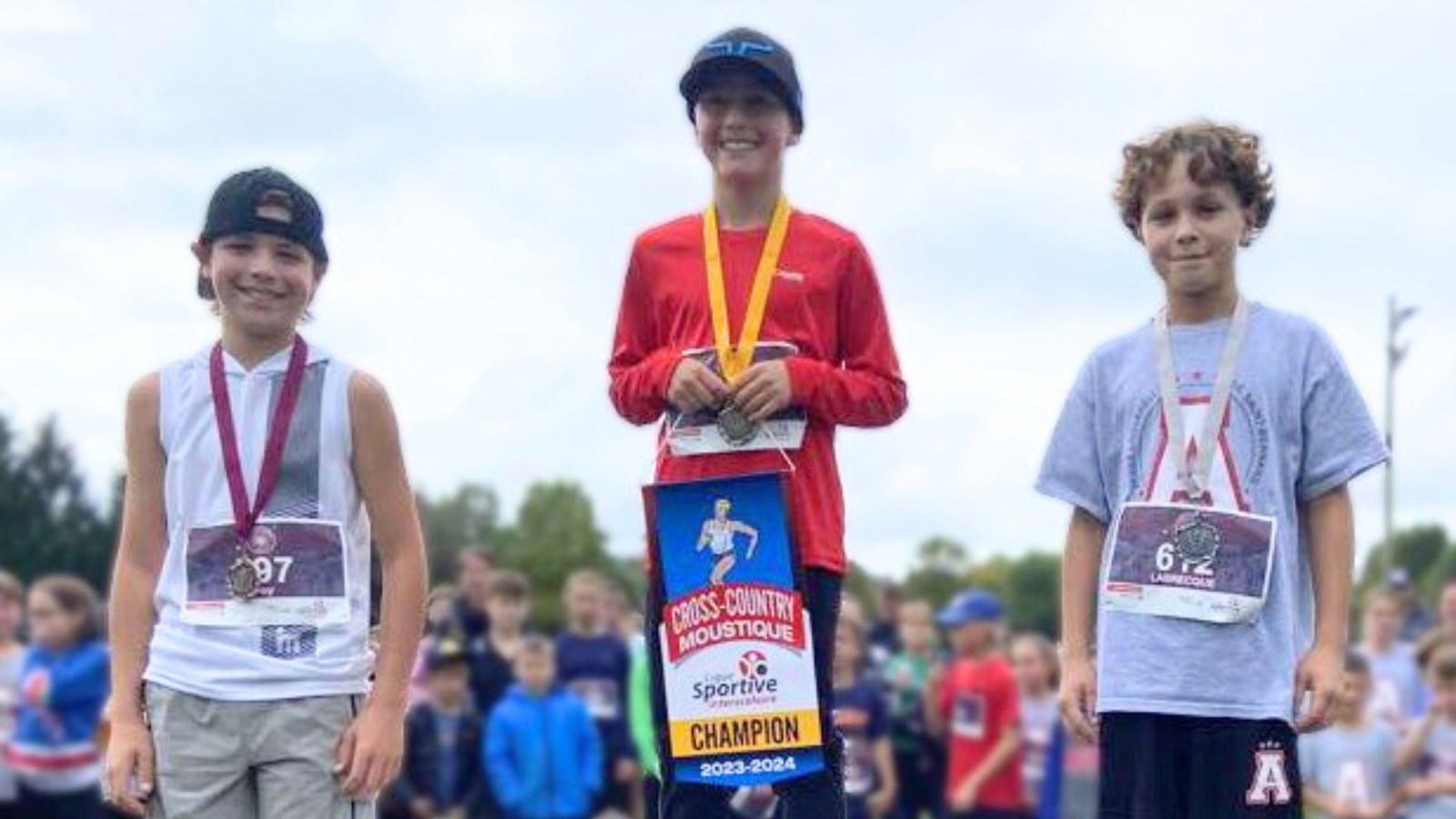 Podium Moustique masculin (2 km): 1- Jordan Breton/l’Astrale, 2- Malik Labrecque/L’Aquarelle de Saint-Bernard, et 3- Antoine Roy/La Découverte.