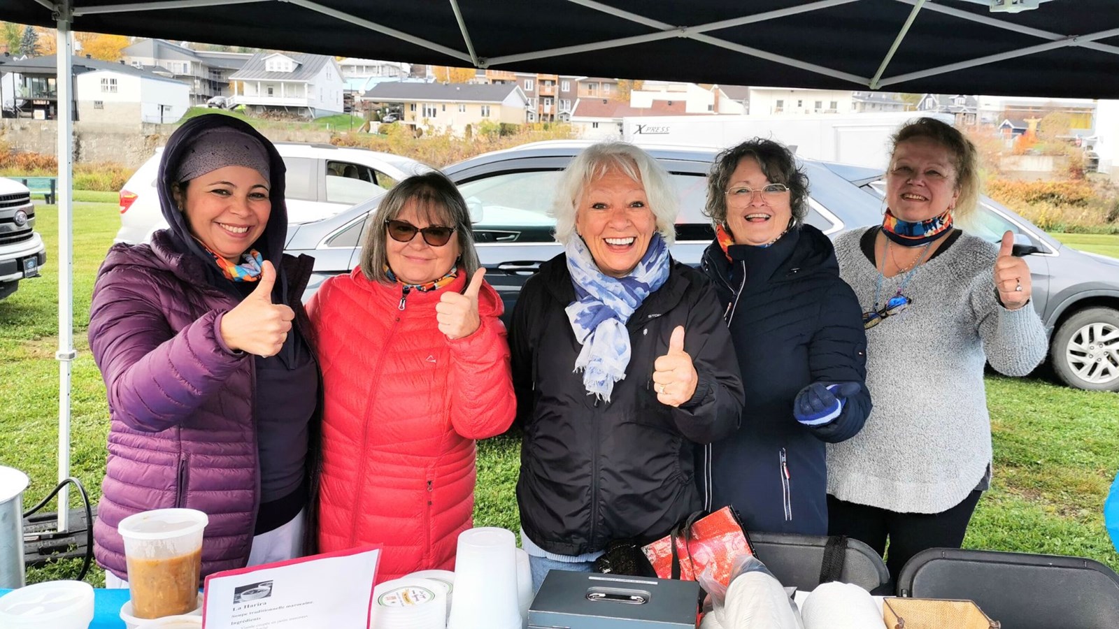 Les Fermières de Beauceville ont mijoté de la bonne soupe pour réchauffer les marcheurs. De gauche à droite, Boutaina Lakrim, Line Vachon, Aline Fortin, Linda Mathieu et Hélène Bérubé.