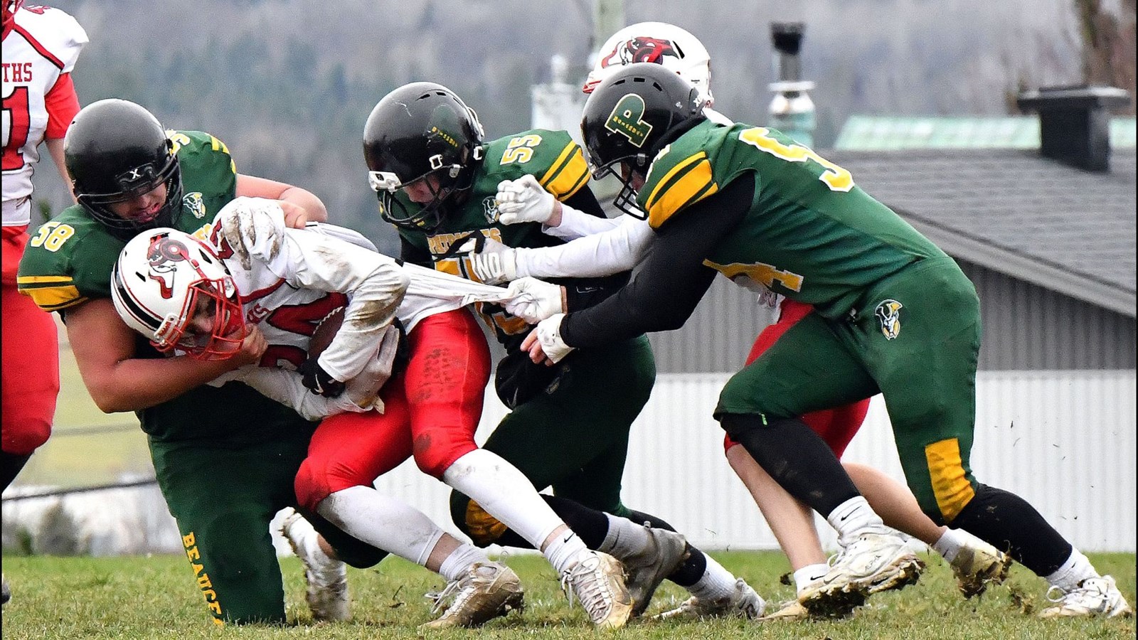 Voyant que l'offensive éprouvait des difficultés, c'est la jeune brigade défensive beauceronne qui a volé le match au quatrième quart. Le front défensif muni d'Alexis Gilbert, Malik Branchaud, Olivier Morissette et Thomas St-Pierre ont causé des ennuis à l'offensive adverse en réalisant cinq sacs du quart et une dizaine de plaqués pour pertes. C'est Juan Roman Garcia qui a bénéficié de cette pression en réalisant une interception importante avec neuf minutes à faire au match. Les Patriotes ont ensuite simplifié le cahier de jeu pour protéger le ballon et écouler les dernières secondes du match.