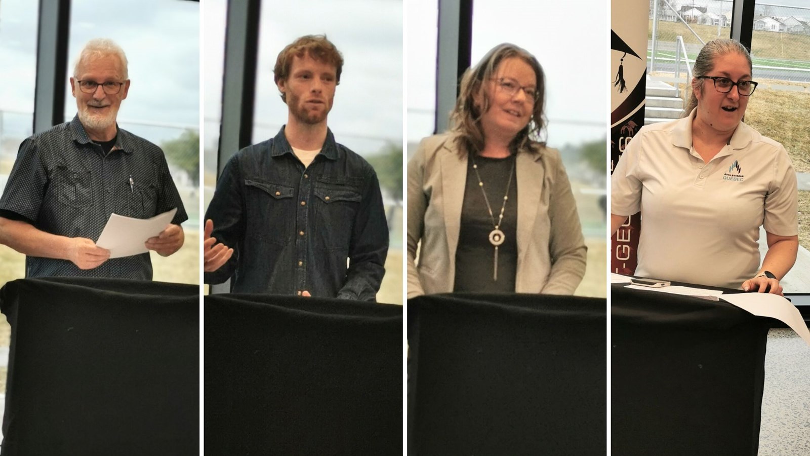 De gauche à droite, Jean-Marie Dionne, président du conseil d'administration, William Lajeunesse, entraîneur-chef, Nancy Moisan, membre du CA et Kim Boyd, agente de développement à la Fédération d'athlétisme du Québec.