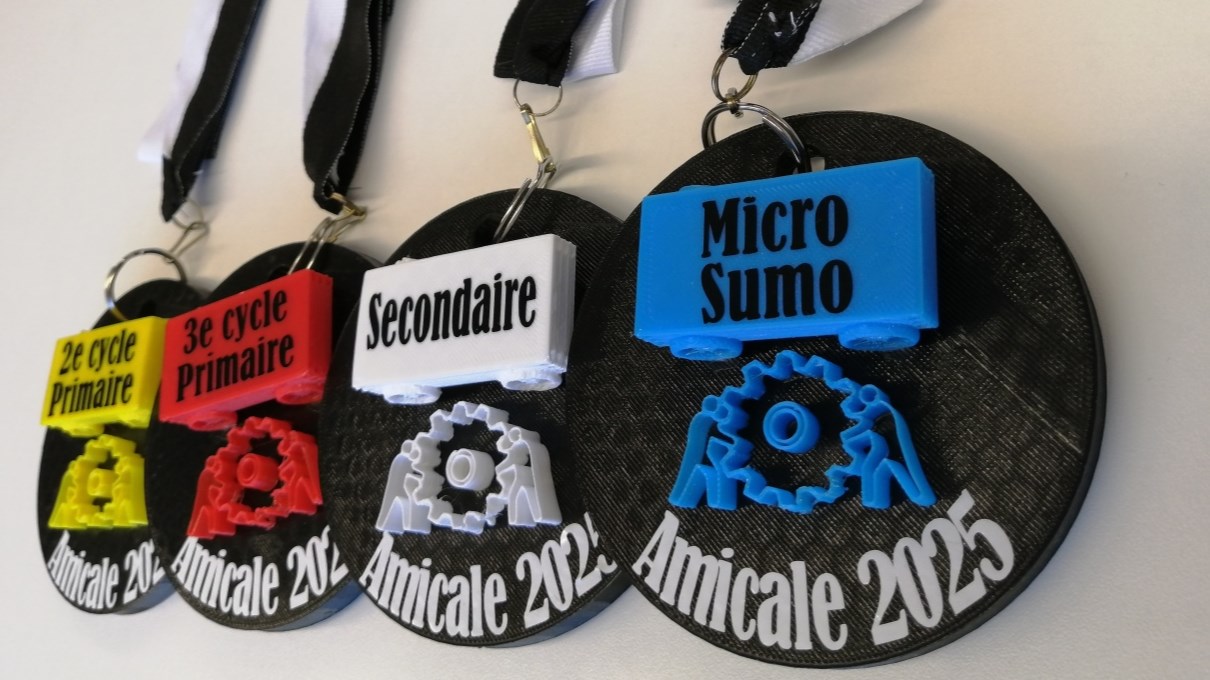 Un concours de création d’un objet honorifique a également permis à Félix Lachance, un élève utilisant les KrëoLab du CSSBE, de concevoir les médailles remises aux gagnants grâce à l’impression 3D et la découpe-vinyle.
