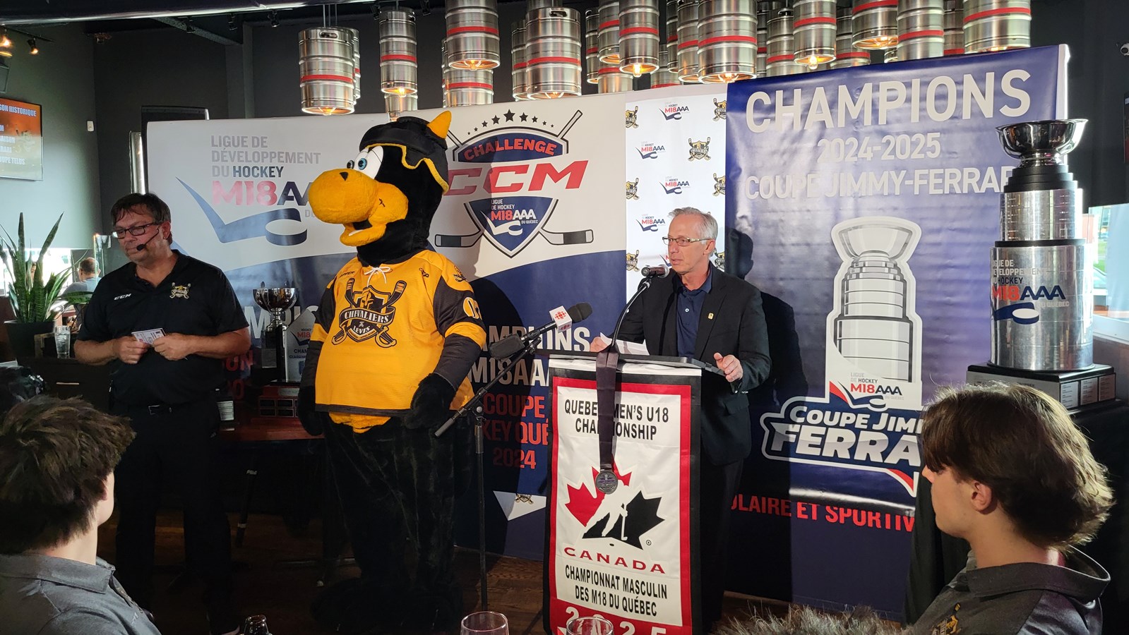 L'équipe de hockey M18 AAA, les Chevaliers de Lévis, dont sept joueurs proviennent de la Beauce, ont tenu une conférence de presse, ce midi, à La Cage Brasserie Sportive de Lévis, afin de faire le bilan de la dernière saison qui a été qualifiée par l'organisation d'historique.