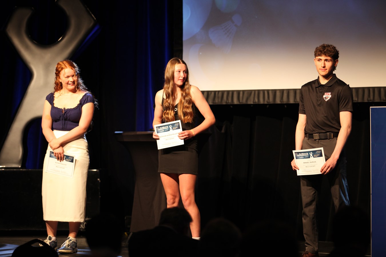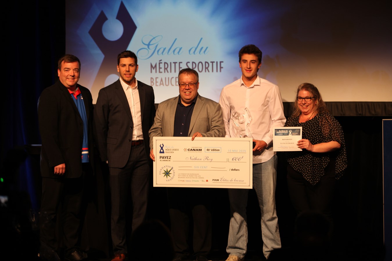Deux autres athlètes se sont hissés sur le podium : Christopher Fortin (Saint-René), footballeur au sein des Huskies de l’Université du Connecticut en NCAA Division 1, et récemment repêché par Calgary en CFL, a reçu l’Élitas d’argent, tandis que le baseballeur Nathan Roy (Saint-Frédéric), déjà actif sur la scène internationale malgré son jeune âge, a été décoré de l’Élitas de bronze.