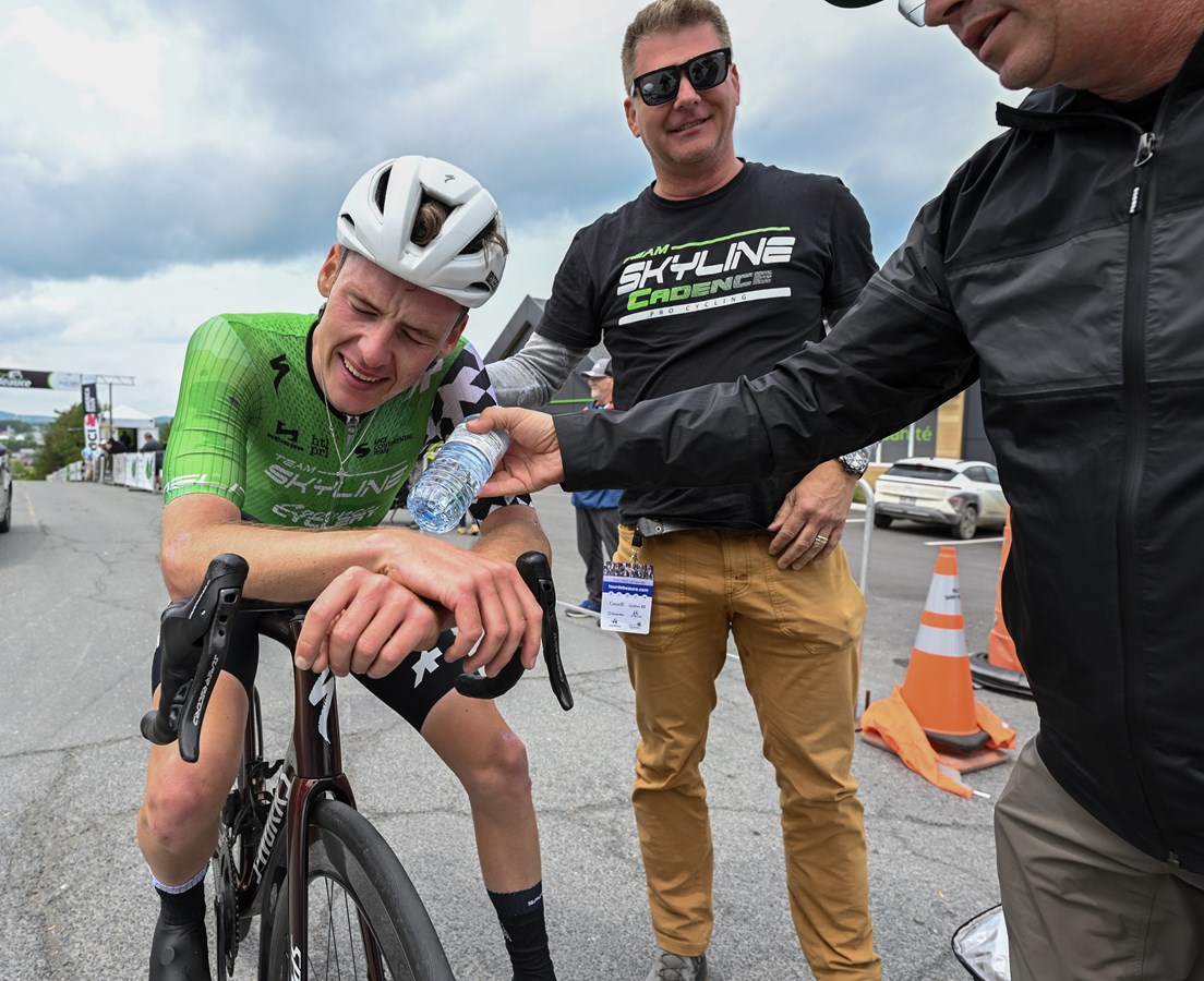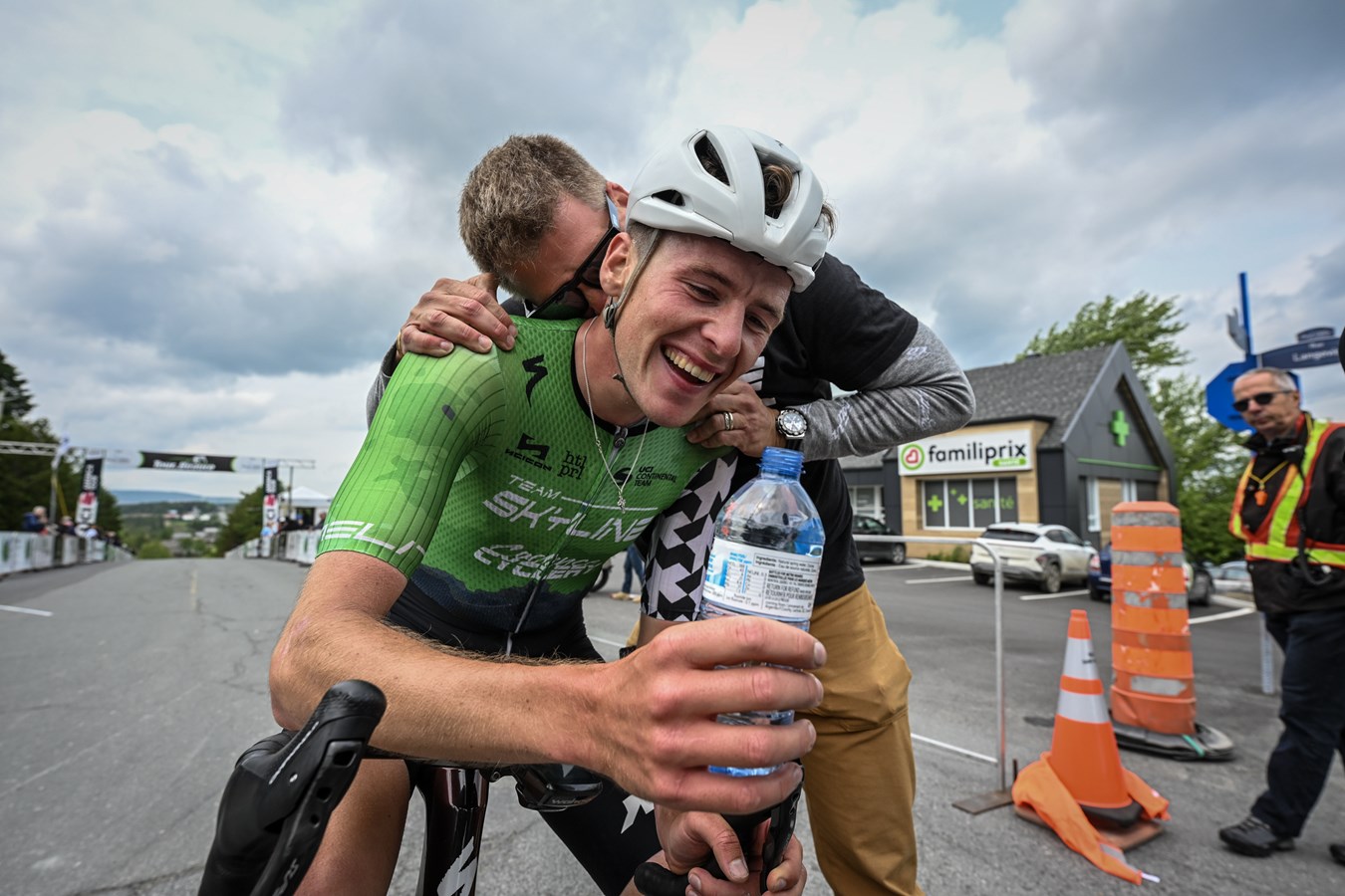 Le couteau entre les dents, McDunphy n’a jamais regardé derrière, creusant un écart de près de cinq minutes à un certain moment sur le reste du peloton. Une telle performance reste un exploit assez rare en Beauce. « Je suis mort ! Je crois que j’ai quelques vis de lousse dans la tête pour avoir fait ça en solo », a-t-il dit en larmes après avoir enlacé son directeur sportif.