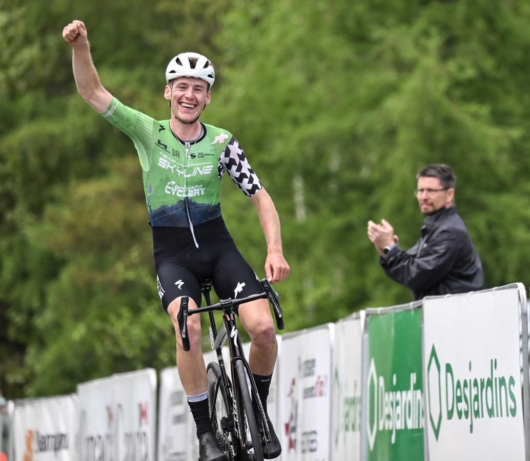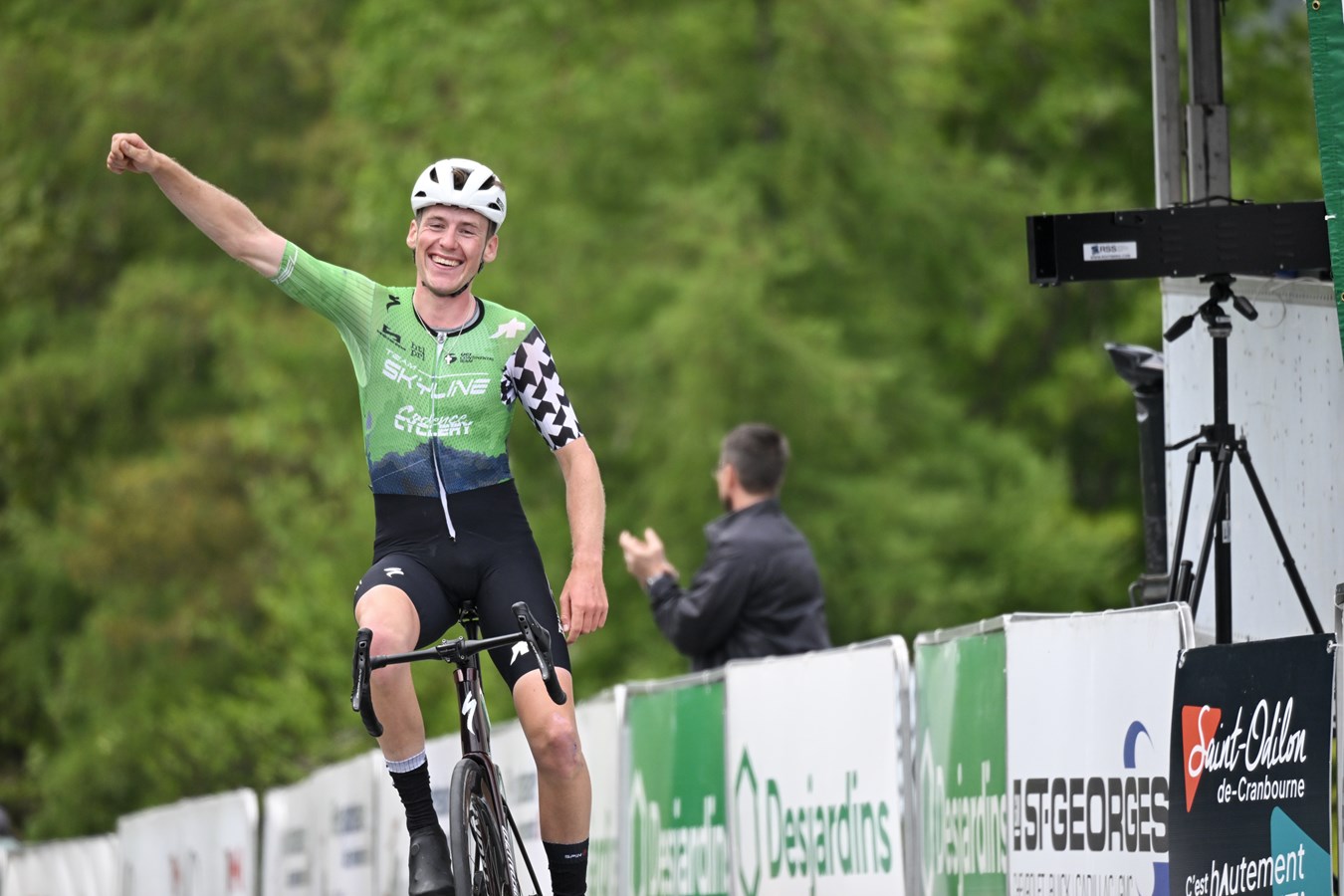 Le cycliste de 28 ans de l’équipe Skyline a fait faux bond à ses compagnons d’échappée au sommet de Saint-Magloire, pour s’imposer après un long et costaud numéro sur la route.