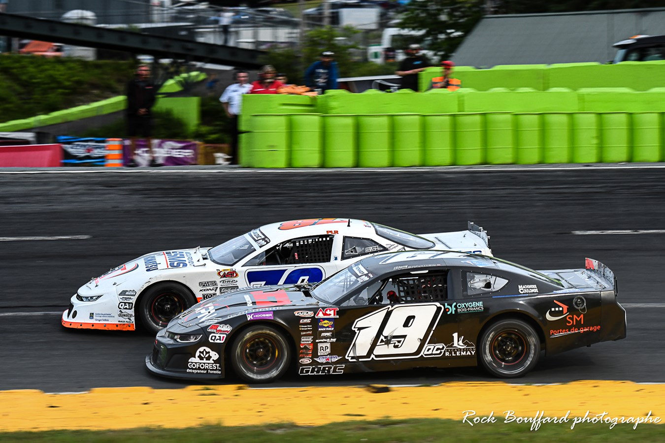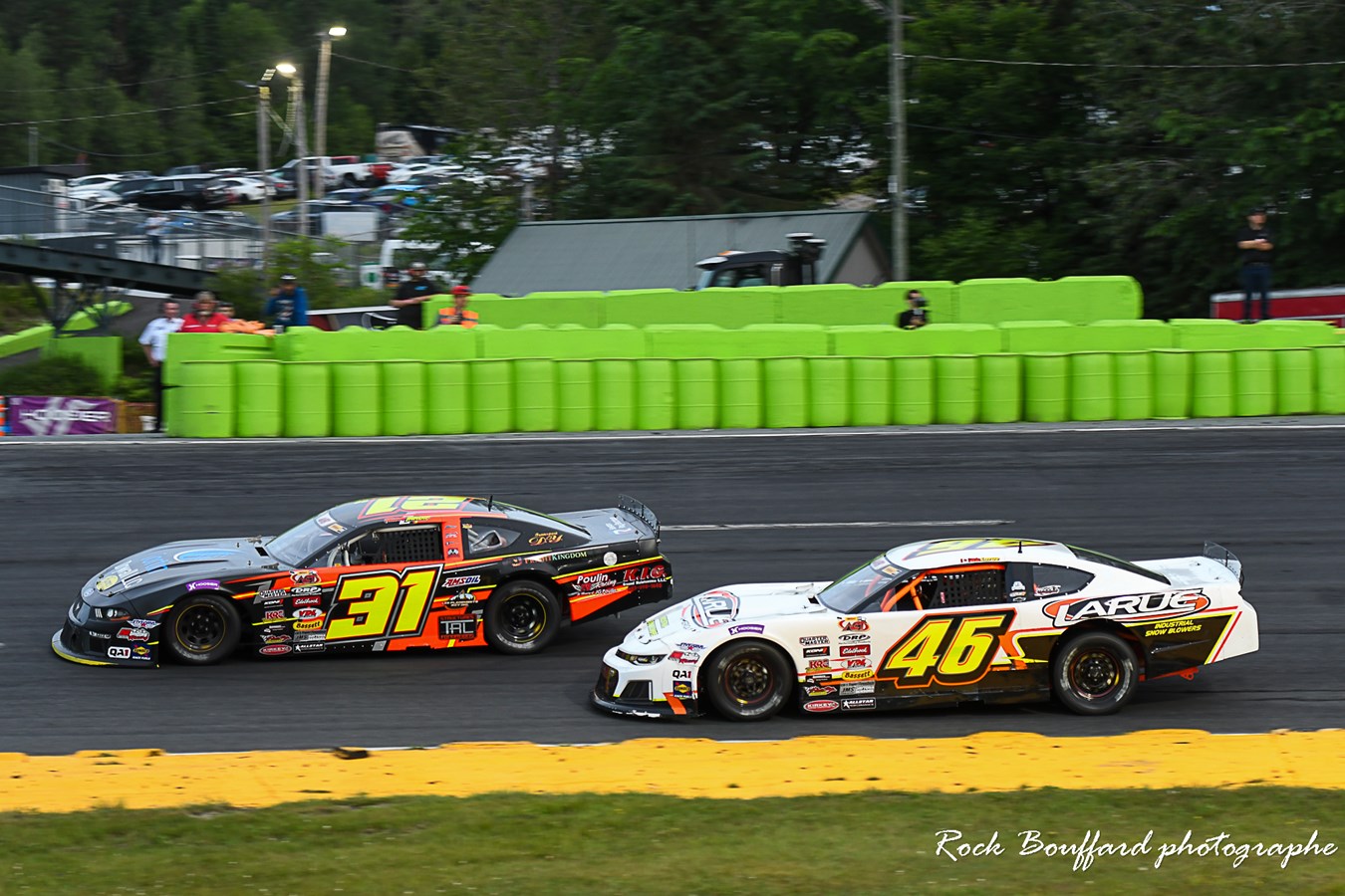 Plus loin dans le peloton, Dany Gariépy (#37QC) a sauvé les meubles avec une 12e place, ce qui lui permet de demeurer dans le top 3 du championnat. Félix Gratton (#6QC), solide encore une fois, a roulé avec aplomb toute la soirée et a terminé 14e. Soirée cruelle pour Dany Trépanier (#19QC), qui doit se contenter d’un 24e rang malgré une course spectaculaire. Le pilote de St-Edward occupait la 4e place sur la piste alors qu’il a été forcé à l’abandon après avoir subi une fâcheuse crevaison avec moins de 12 tours à faire.