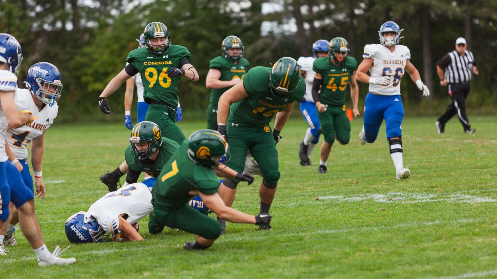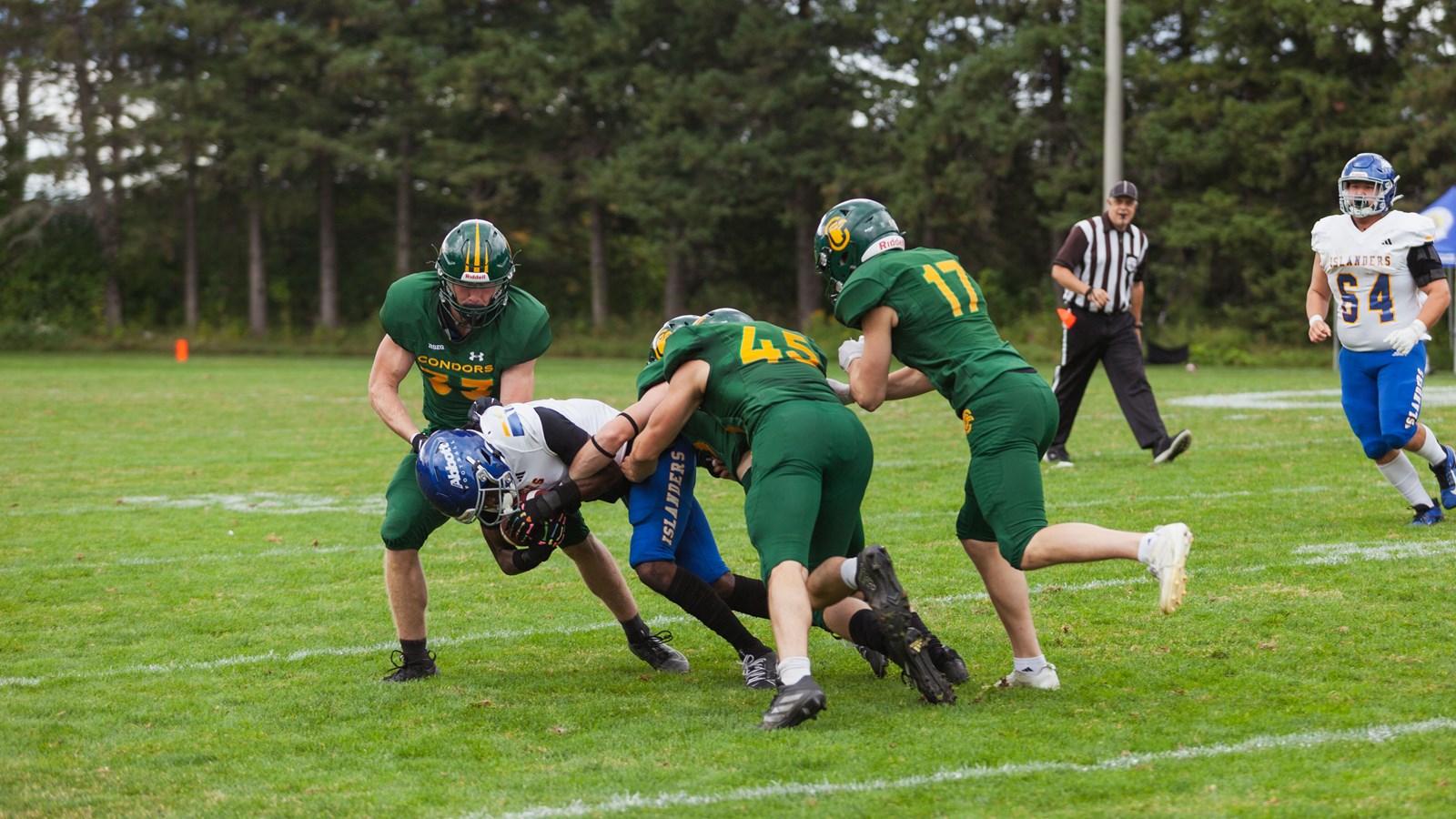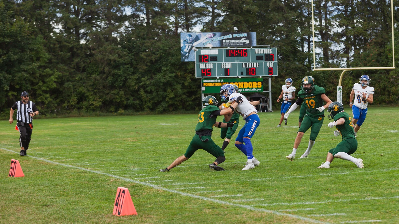 Sur le front défensif, les Condors ont complètement muselé le jeu au sol des Islanders, ne concédant que 41 verges. Le demi défensif Keven Morin s’est distingué avec deux interceptions, tandis que ses coéquipiers, Nathaniel Fillion et William Leclerc, en ont réussi chacun une. Leclerc a également brillé avec quatre plaqués solos et deux passes rabattues, en plus de son interception.