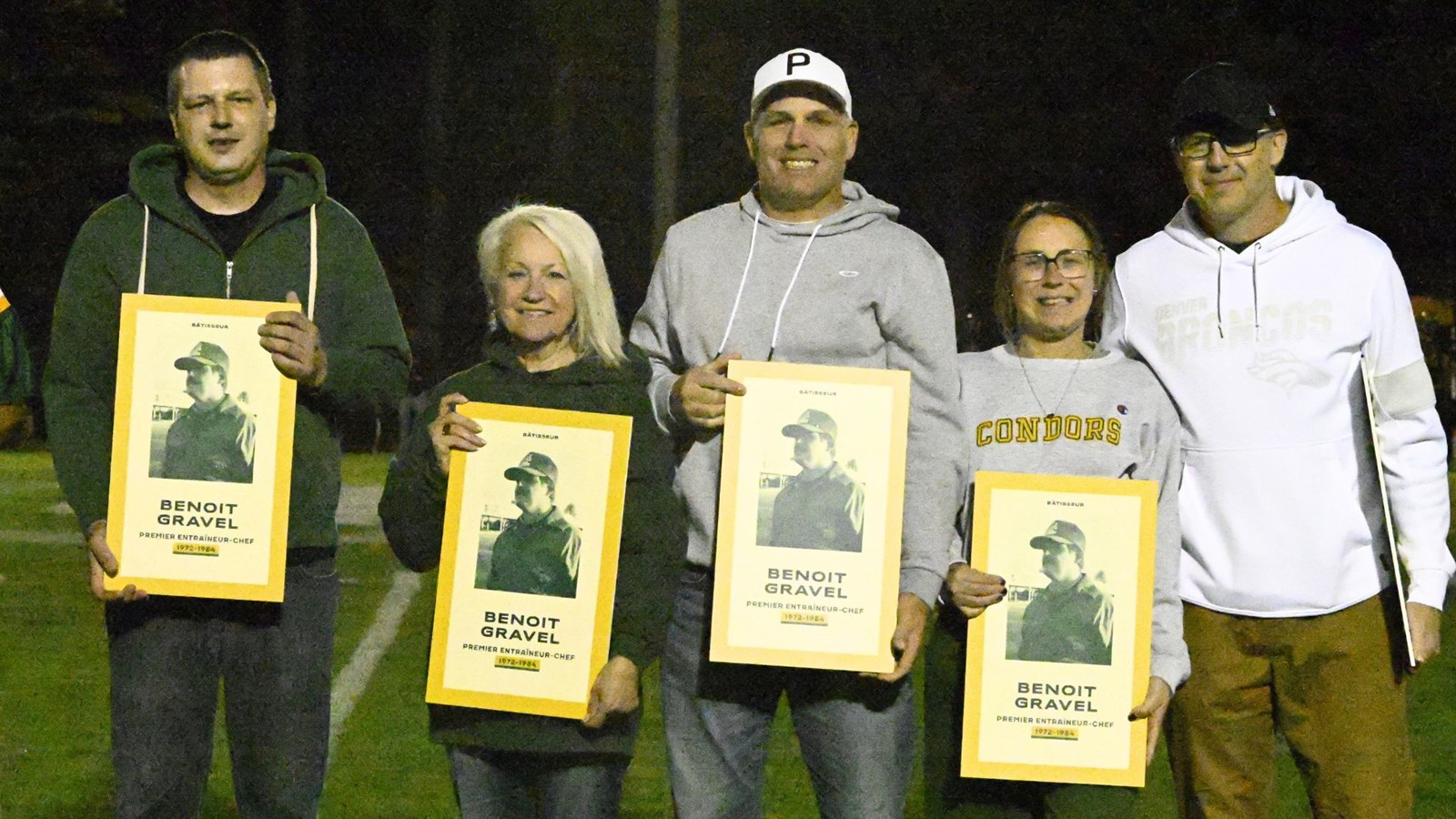 C'est la famille de Benoît Gravel, fondateur du programme et premier entraîneur-chef, considéré comme le père des Condors, qui a reçu la plaque d'intronisation au Temple de la renommée, attribuée à titre posthume.