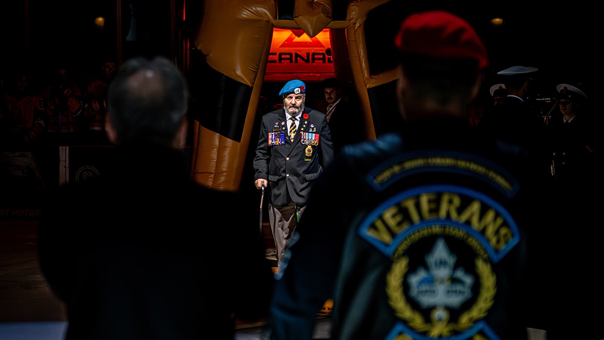 Pour le match de vendredi soir face aux Grenadiers de Châteauguay, les Chevaliers de Lévis ont pris le temps de recevoir des vétérans ainsi que l’orchestre réserviste de la Marine royale canadienne pour se souvenir de ceux qui se sont sacrifiés pour les citoyens.