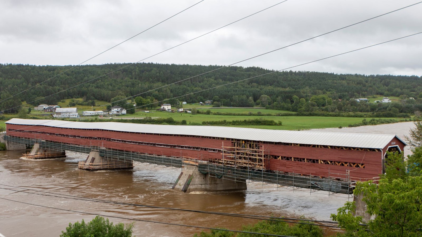 Les travaux ont été entrepris en mai sur cette infrastructure patrimoniale qui est presque centenaire (1927). Rappelons que, par décret du MTQ, l’accès au pont couvert est interdit depuis février 2018, en raison de la rupture de pièces de bois (cordes intérieures et diagonales) et de la pourriture de certaines poutres.