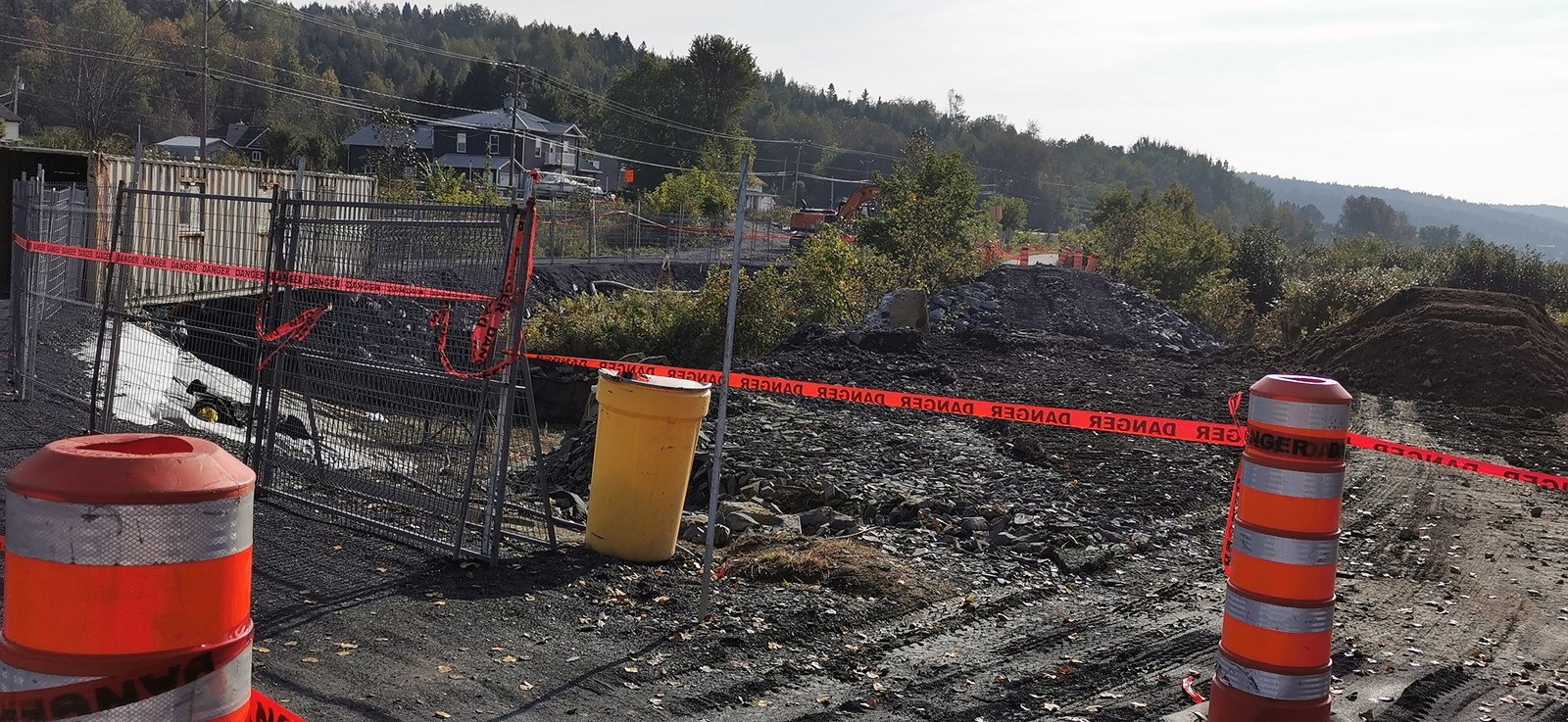 La première semaine, Excavation Lapointe et fils, un sous-traitant des Constructions Binet qui a obtenu le contrat de réfection, a construit une passerelle temporaire de déviation, pour permettre aux usagers de continuer à circuler sur la piste.