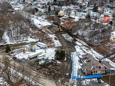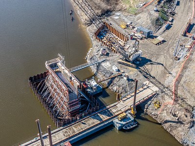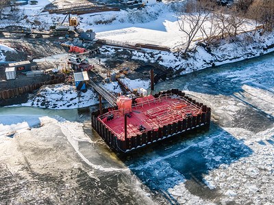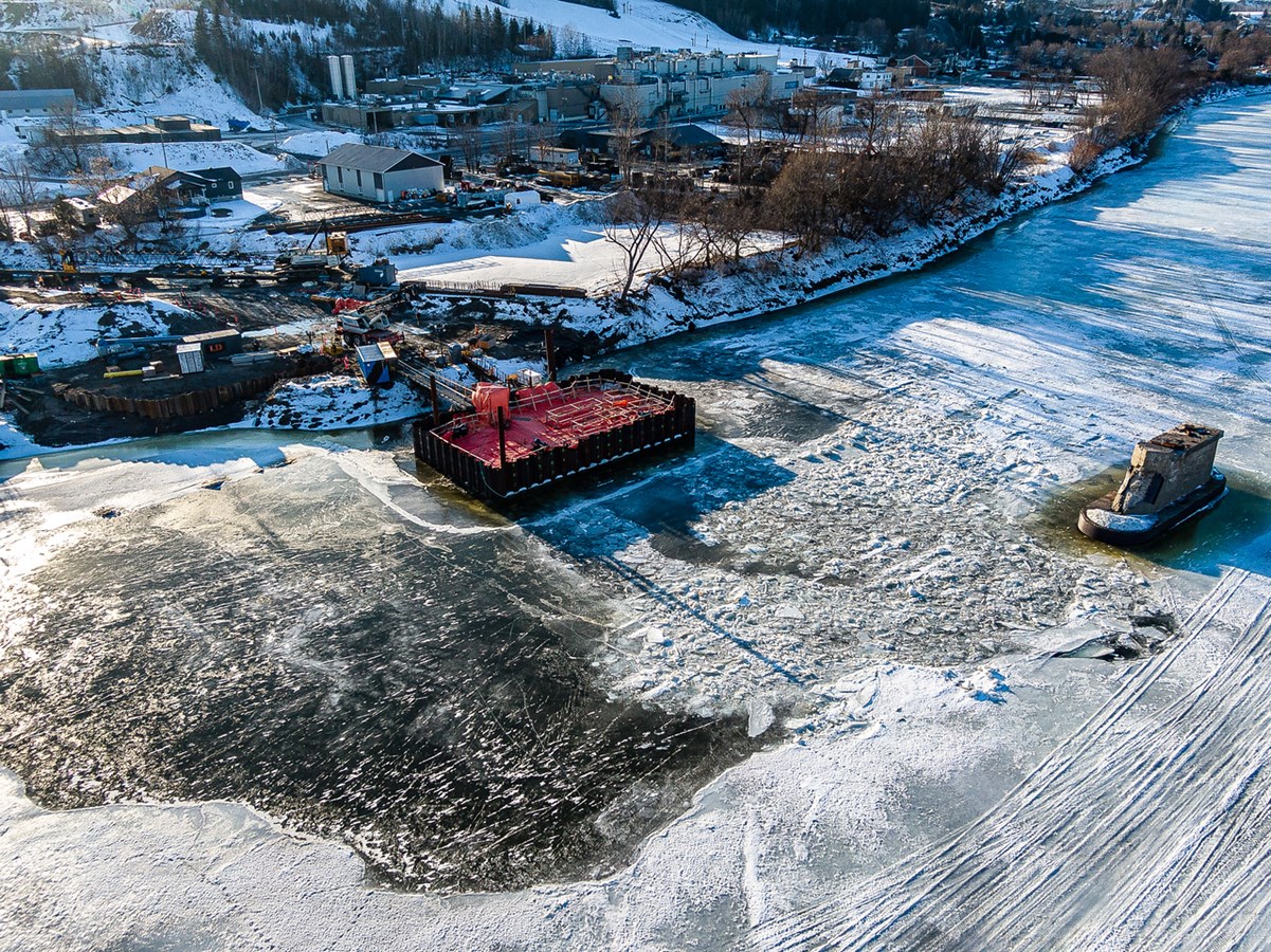 Vol au dessus du futur pont ferroviaire de Vallée-Jonction