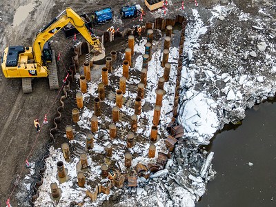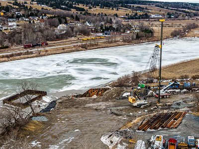 Les travaux de construction du pont ferroviaire, qui enjambera la rivière Chaudière à la hauteur de Vallée-Jonction, commencent à donner le profil de la nouvelle structure qui verra le jour, comme en témoignent les photos de Jean-Marie Fecteau, qui accompagnent cet article.