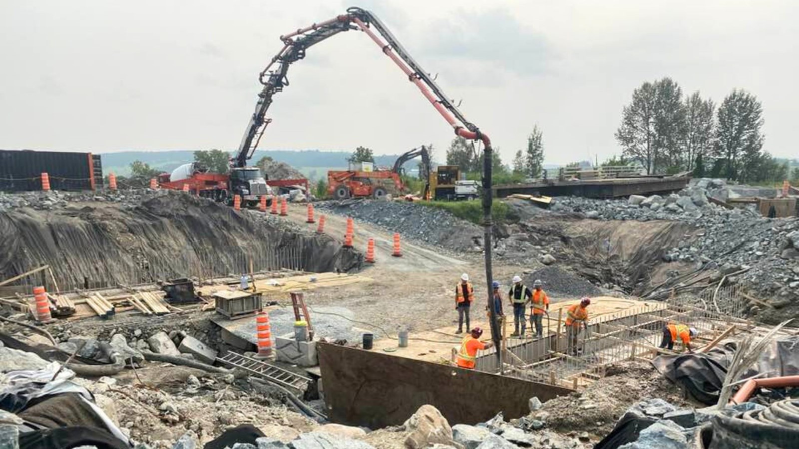 Par ailleurs, les opérations de remplacement du pont permanent, qui traverse la rivière à cet endroit, se poursuivent allègrement. Les coulées de béton pour les piliers du nouveau pont ont été effectuées cette semaine.