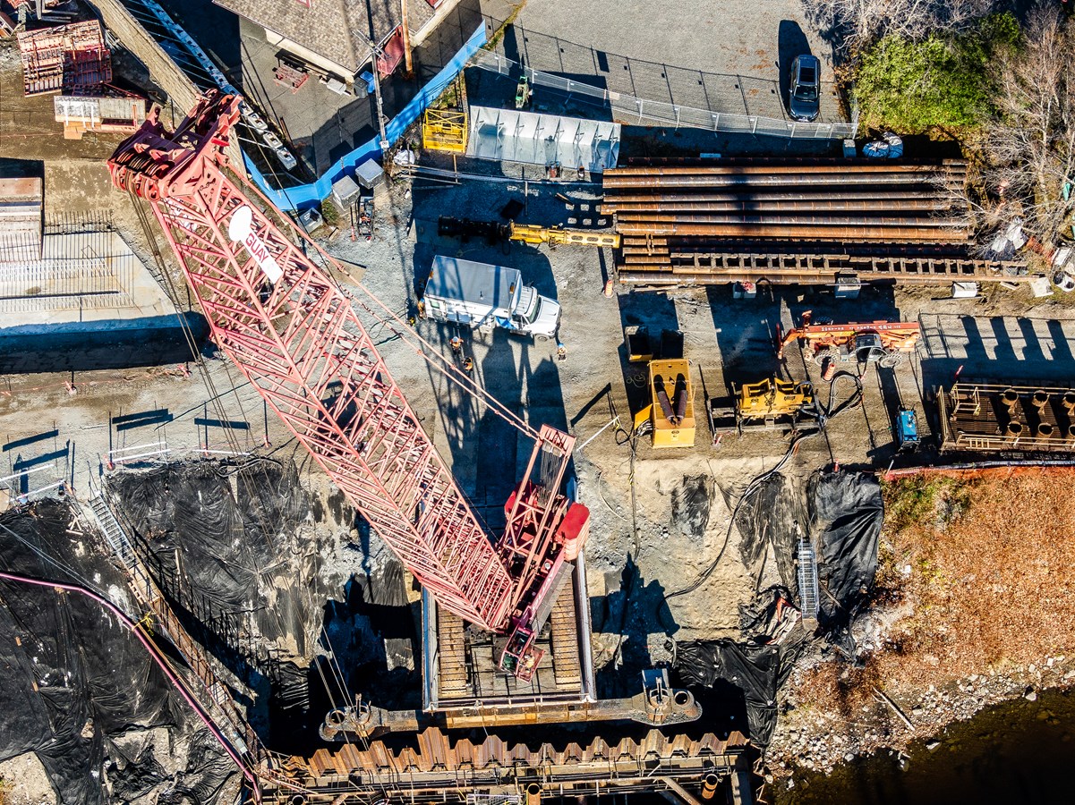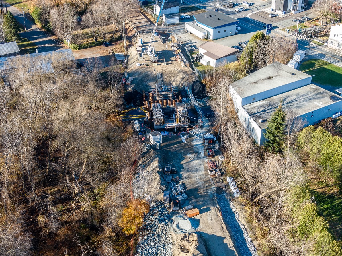Vol au-dessus du futur pont ferroviaire de Vallée-Jonction