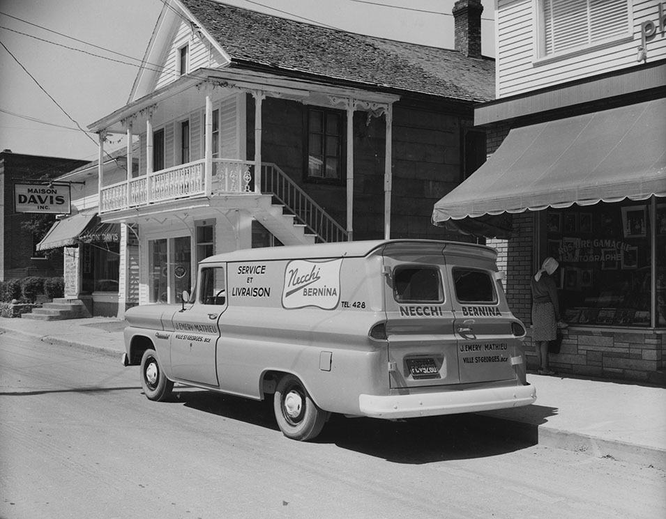 Son origine remonte aussi loin qu'en 1920 alors qu'il fut ouvert par M. Jos Davis, dans une bâtisse qui existe encore aujourd'hui et qu'on voit à la photo 3 (maintenant des logements résidentiels). Pendant plusieurs années, ce commerce fut opéré par M. Davis lui-même et son épouse, le magasin était au rez-de chaussée et ils résidaient au second étage auquel ils avaient accès par l'escalier qu'on voit sur le côté. Vers 1945, leur neveu Morris Davis (fils d'Israël Davis de Montréal) vint travailler pour eux et il a appris à cet endroit tous les secrets du métier sous la supervision de son oncle. Le 30 avril 1956, Morris et son père fondent la compagnie Maison Davis Inc et décident d'acquérir l'entreprise. Quelque temps plus tard, ils achètent l'édifice voisin au coin de la 123e Rue, dans lequel M. Azer Bolduc opérait un commerce de vente de chaussures. Ils y déménagent leur propre magasin, (comme on le voit à gauche sur la photo 4, fin des années '50), avec l'intention de le rénover. Ce qu'ils font dans les années suivantes, le transformant de fonds en comble pour y ériger un imposant édifice de trois étages.