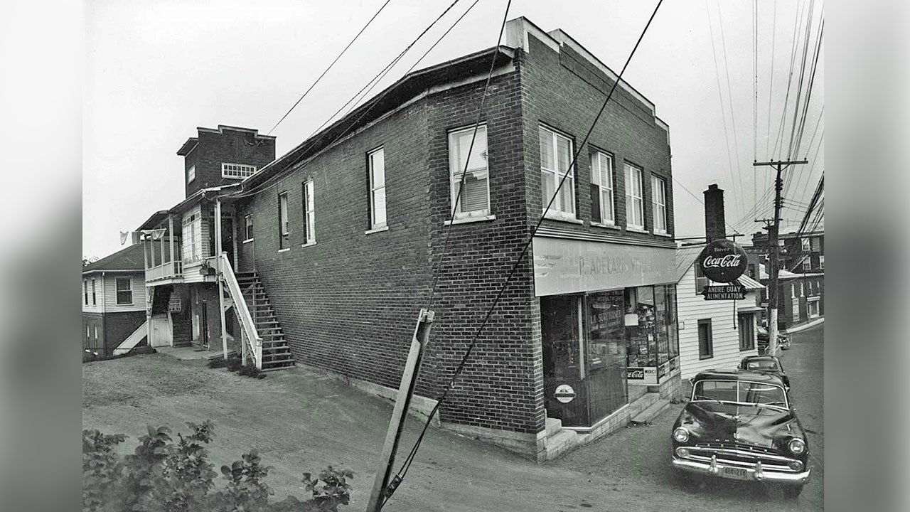 Cette épicerie était située au coin de la 2e avenue et de la 122e rue et elle appartenait à M. Henri Poulin. Dans les années '40, c'était M. Jules Moisan qui opérait ce commerce. Cette photo date de 1962. Selon les publicités qui apparaissent à l'extrême gauche de l'image, on voit qu'il y avait déjà une section de buanderie à l'époque de la 1re photo. On constate aussi qu'un cycle de lavage coûtait 0,25$ et qu'un cycle de séchage coûtait 0,10$. Wow, quelle aubaine. Entre 1963 et 1967, l'épicerie fut opérée par M. Léopold Courtemanche, dont la famille résidait au second étage de la maison voisine. Quand à la buanderie, elle prit par la suite plus d'expansion pour devenir un laundromat public, entrainant la disparition de la section épicerie. Il y eut aussi dans le même secteur, vers 1960, un gros compétiteur, M. André Guay qui ouvrit une nouvelle épicerie (photo 2) presque en face, qui allait devenir très populaire au fil des ans et qui, à la fin des années '60, déménagea plus loin, dans les environs de la 132e rue, dans un local beaucoup plus grand, puis devint un Marché Provigo au Carrefour Saint-Georges vers 1978, en remplacement de l'épicerie A&P. Quand au laundromat, en 1983, le Bercail, un organisme d'aide aux sans abris alla s'installer voisin, au 12165 de la 2e avenue. Puis aux environs de l'an 2000, le Bercail acheta l'édifice que nous voyons sur la 1re photo, d'importantes rénovations furent effectuées, et le deux bâtiments furent joints et fusionnés pour devenir Au Bercail, résidence accueillant des hommes et femmes démuni(e)s vivant des difficultés personnelles ou familiales temporaires (photo 3). Cet organisme existe encore aujourd'hui, au même endroit.