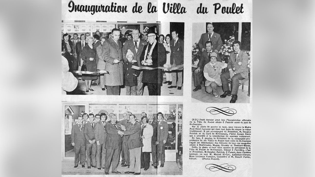 Cette fois, un reportage sur notre histoire récente, même les plus jeunes connaissent cet établissement familier (photo 1). Celui-ci a ouvert ses portes chez nous le jeudi 23 novembre 1972. C'était le premier établissement de restauration rapide à Saint-Georges et il a connu un succès fulgurant. Pendant longtemps, on y voyait des files de clients faisant la queue à la porte pour obtenir leurs morceaux de poulet panné, files encore plus longues les fins de semaine. La plupart se rappellent de la serveuse gentille et toujours souriante qui y a travaillé pendant 42 ans, Mme Gisèle Boucher, qu'on voit à la 2e photo (elle a commencé le 5 janvier 1973), accompagnée de celui qui y fut longtemps gérant, le sympathique Gilles Pépin. Un article complet fut publié dans l'hebdomadaire régional dans les jours suivant l'ouverture, donnant tous les détails de ce nouveau service à Saint-Georges (photo 3). On y voit entre autres la photo du 1er gérant Ronald Fortin, celui-là même qui a eu la bonne idée d'engager la charmante Gisèle. Avant ce commerce, il y avait sur le même terrain deux résidences, celle de Gérard Dionne à gauche et celle d'Amédée Dionne à droite (photo 4). On les a toutes deux déménagées quelques mois avant la construction de PFK. La 16e rue fut élargie et le restaurant a pris le reste de l'espace jusqu'à la 15e rue. Saviez-vous que cette chaîne a 15,000 succursales dans le monde, dont plus de 3500 en Chine. Ces restaurants ont connu leur heure de gloire au Canada dans les années '70. Mais aujourd'hui, le colonel Sanders perd des plumes, les gens surveillent leur alimentation et plusieurs se désintéressent de la malbouffe. Plusieurs ont fermé un peu partout dans la province, et il n'y en a plus aucun dans la ville de Québec, le dernier (du boulevard Hamel) ayant fermé ses portes le 29 décembre 2019. Ces fermetures sont causées par des difficultés financières et le manque de personnel. Mais celui de notre ville semble toujours bien fonctionner et la clientèle est encore au rendez-vous. On peut se gâter une fois de temps en temps, c'est bon à s'en lécher les doigts.