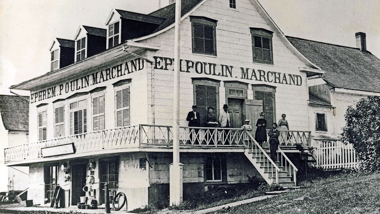 Il y eut autrefois, il y a très longtemps, deux commerçants du nom d'Ephrem Poulin (tous deux nés dans les années 1800) ayant fait affaires sur la première avenue au centre-ville. Celui dont il est question ici fut le premier, né en 1838, 46 ans avant l'autre. Notre Ephrem Poulin, celui dont on parle ici, était marchand tandis que le dernier a été bijoutier.